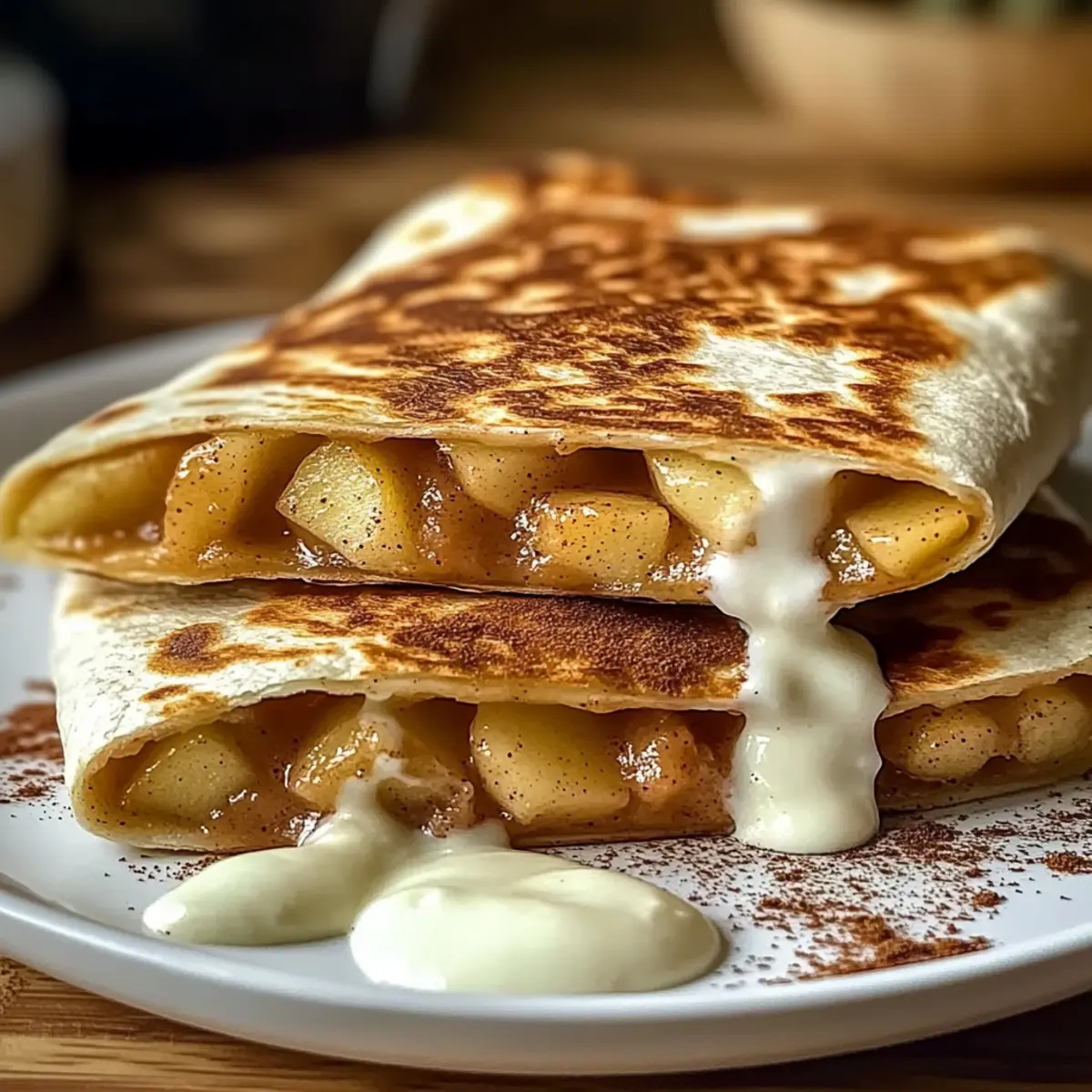 Lay a tortilla flat on a clean surface. Spoon a generous amount of the warm apple mixture onto one half, leaving a border. If you’re using cream cheese or vanilla yogurt, add it on top of the apples for extra creaminess. Carefully fold the tortilla over, pressing it down gently to secure the filling.