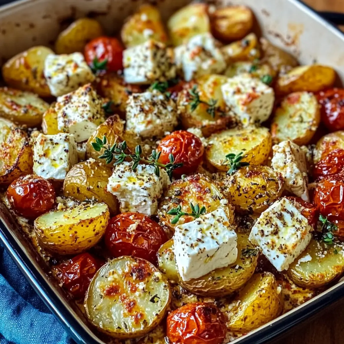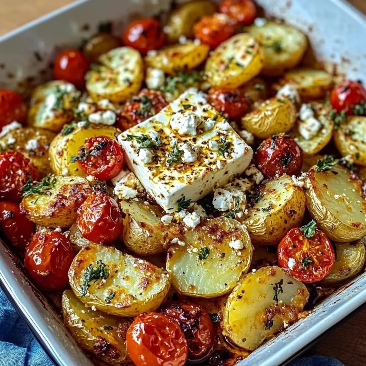 5. Bake for 30–35 minutes until potatoes are golden and tender, and feta is softened.