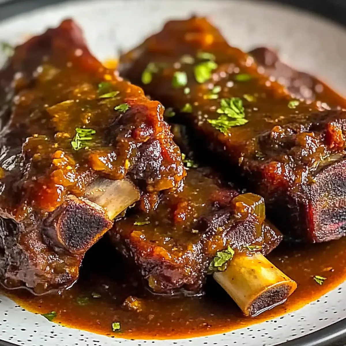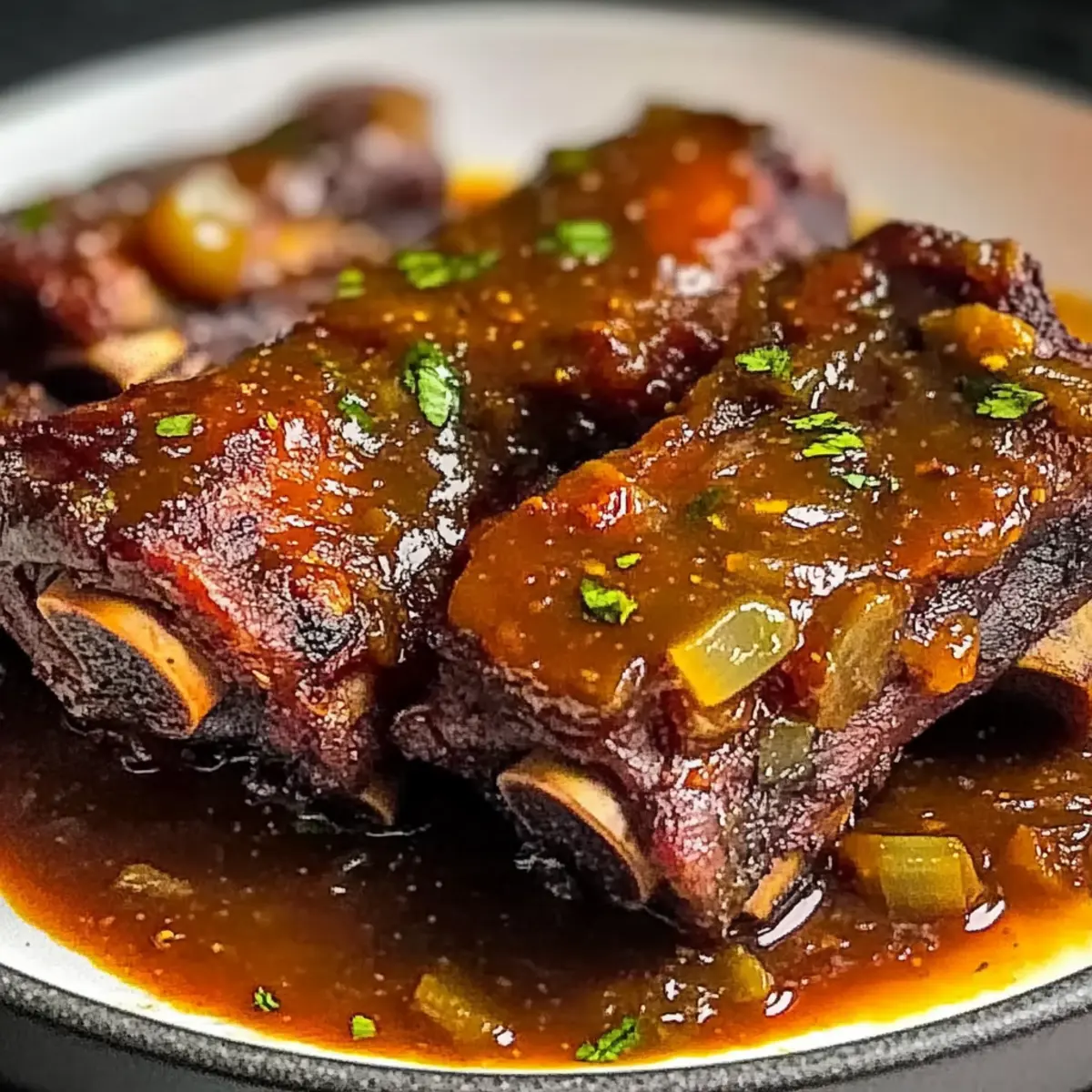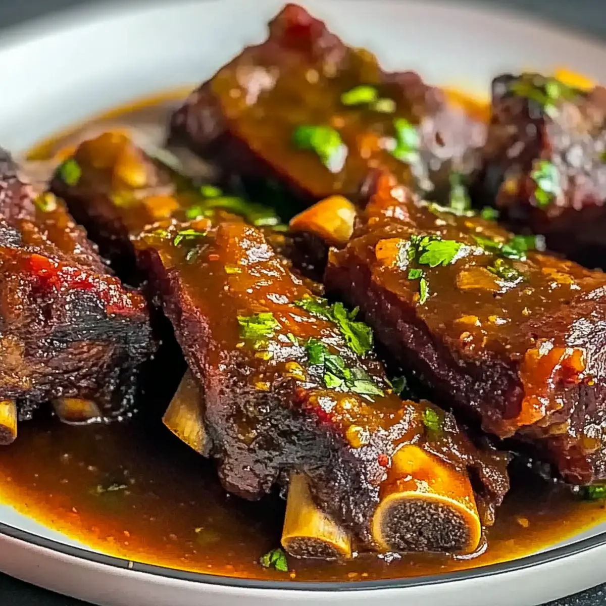 Delicious beef ribs bathed in smoky tomato sauce and chipotle, perfect for a hearty dinner.