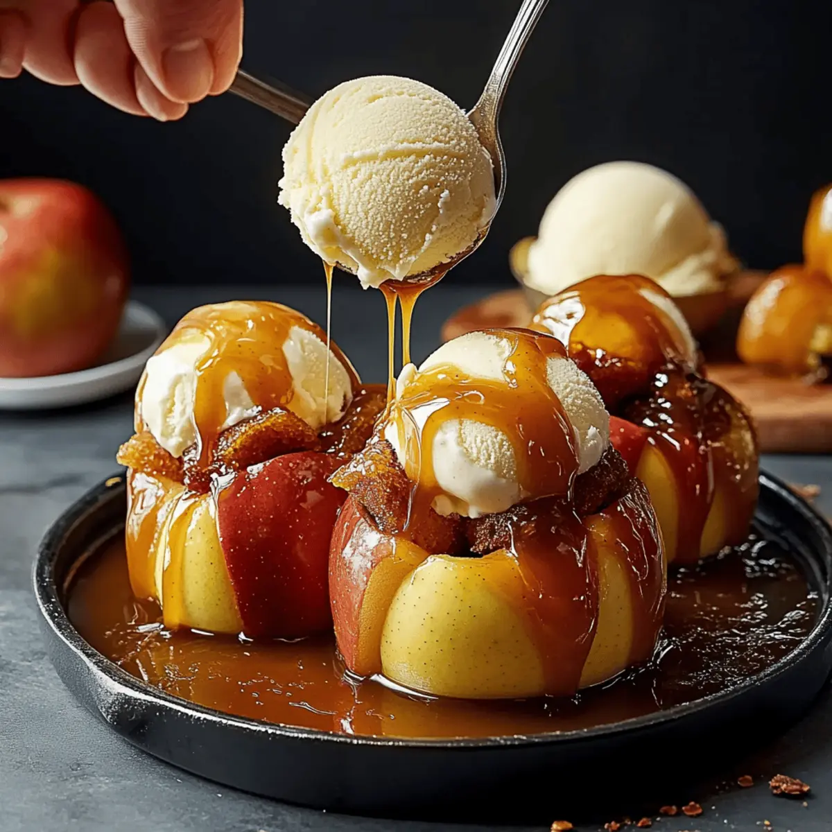- Creamy Vanilla Ice Cream: The cool, creamy ice cream contrasts beautifully with the warm apples and gooey caramel, enhancing each delicious bite.