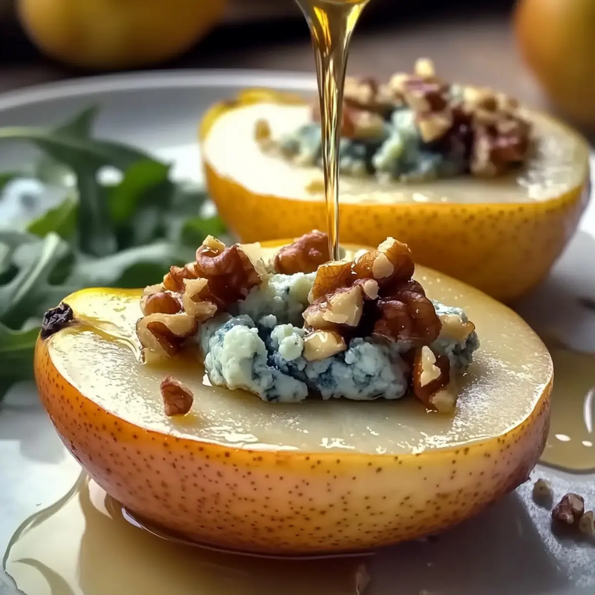 Elevate your appetizer game with these Blue Cheese Stuffed Pears, combining sweet pears, creamy blue cheese, and crunchy walnuts.