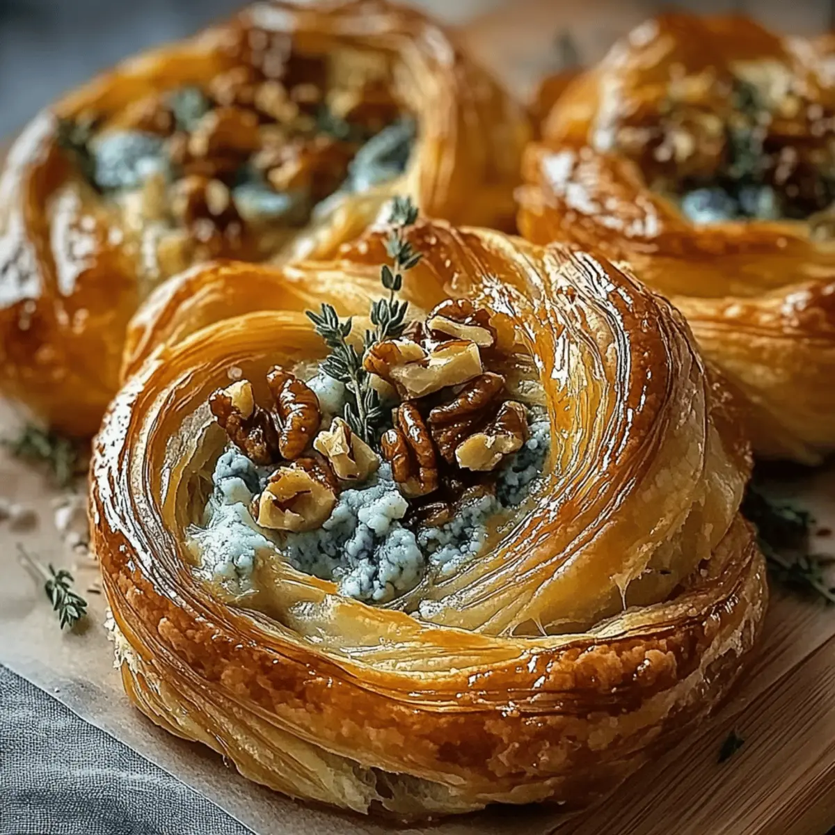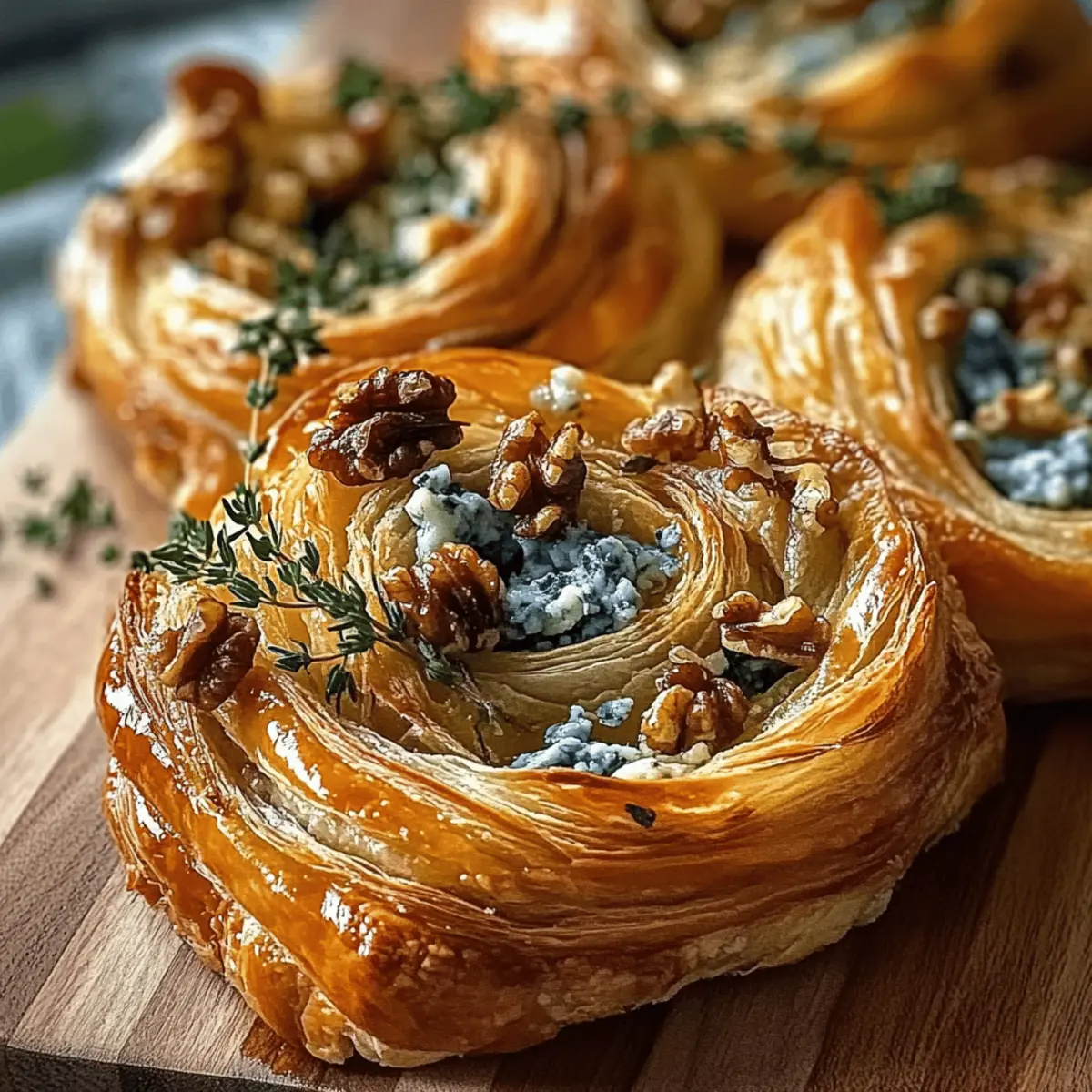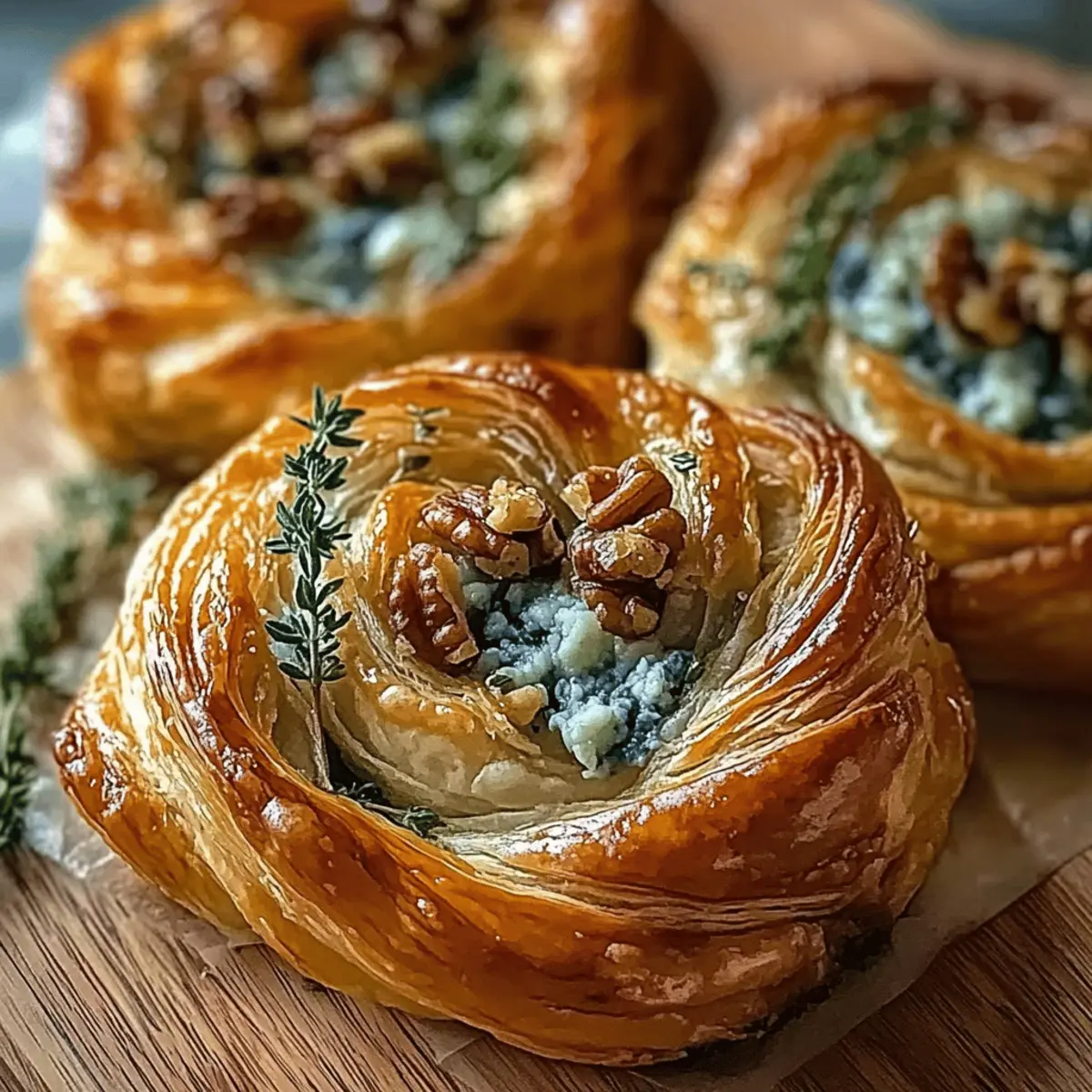 Delicious Blue Cheese, Walnut, and Thyme Puff Pastry Twirl
