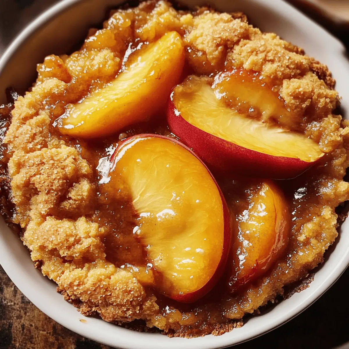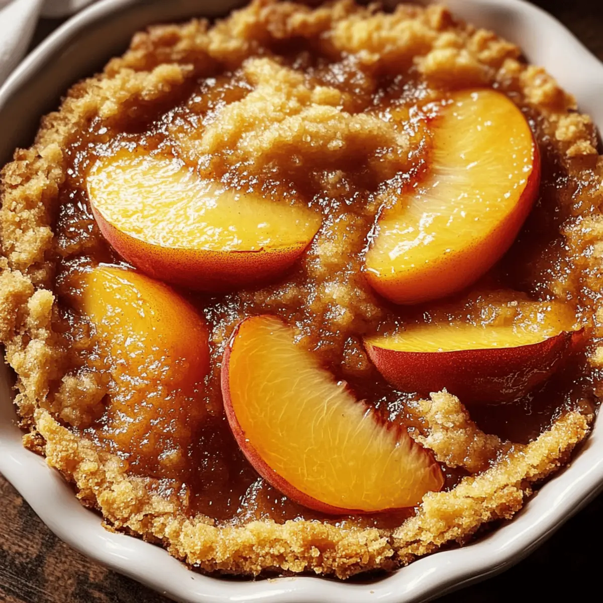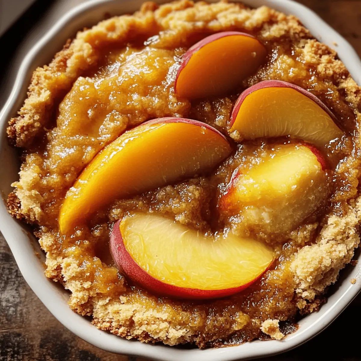 Perfect Texture: The golden, airy topping contrasts beautifully with the bubbling peach filling, creating a delightful experience in every bite.
