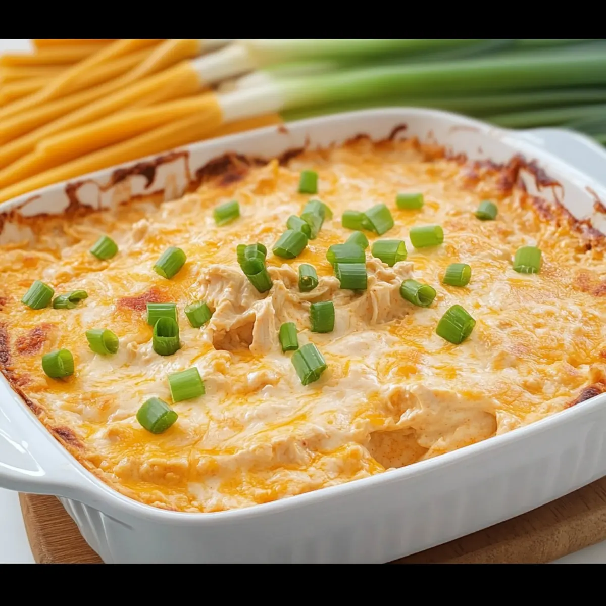 Allow the Buffalo Chicken Dip to cool for a few minutes before garnishing with chopped green onions for a fresh touch. Serve warm with an assortment of dippers like tortilla chips, celery sticks, or crackers. This final flourish will elevate your presentation and flavor, making every scoop irresistibly satisfying.