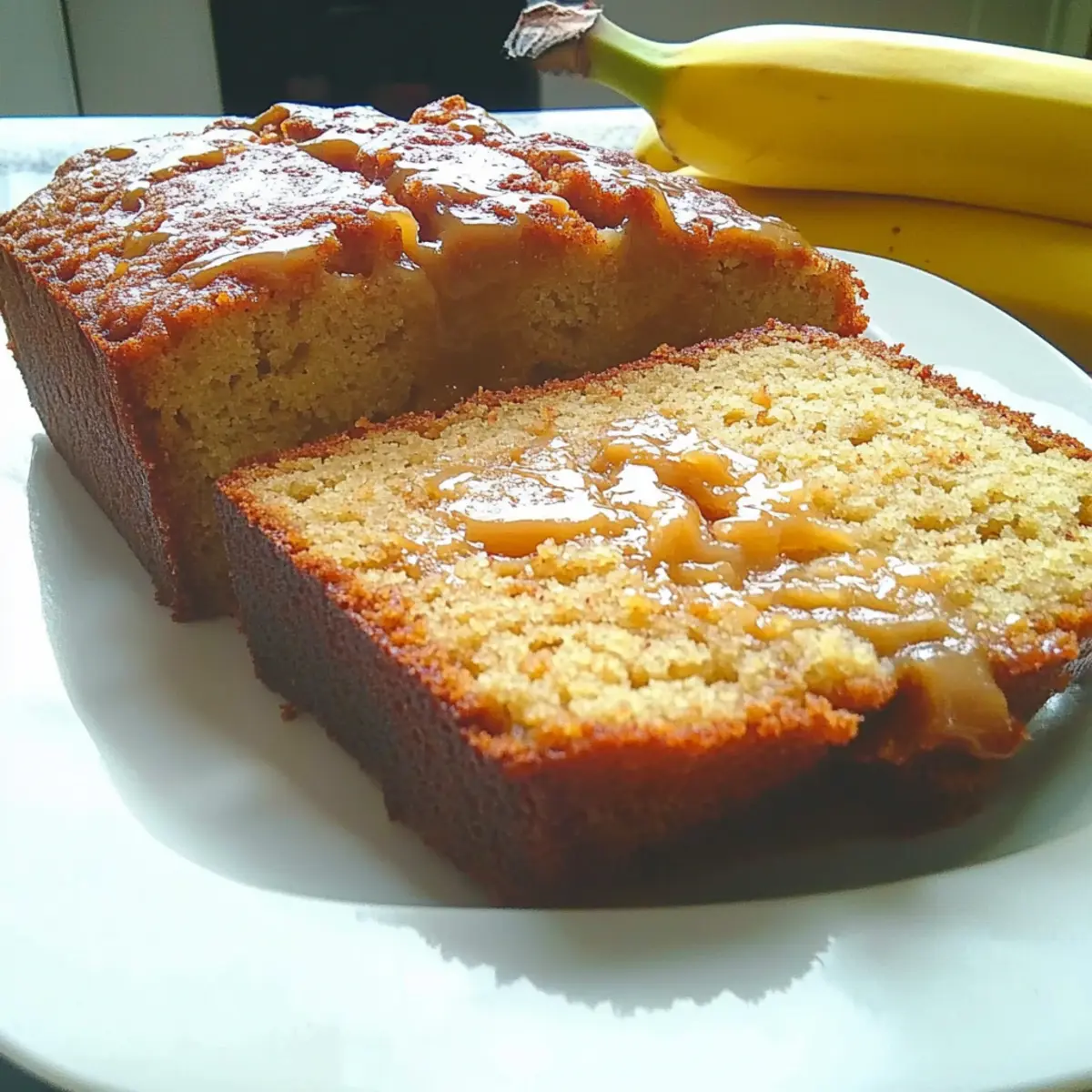 - Once baked, pierce the loaf and drizzle the butterscotch syrup over it, letting it soak in.