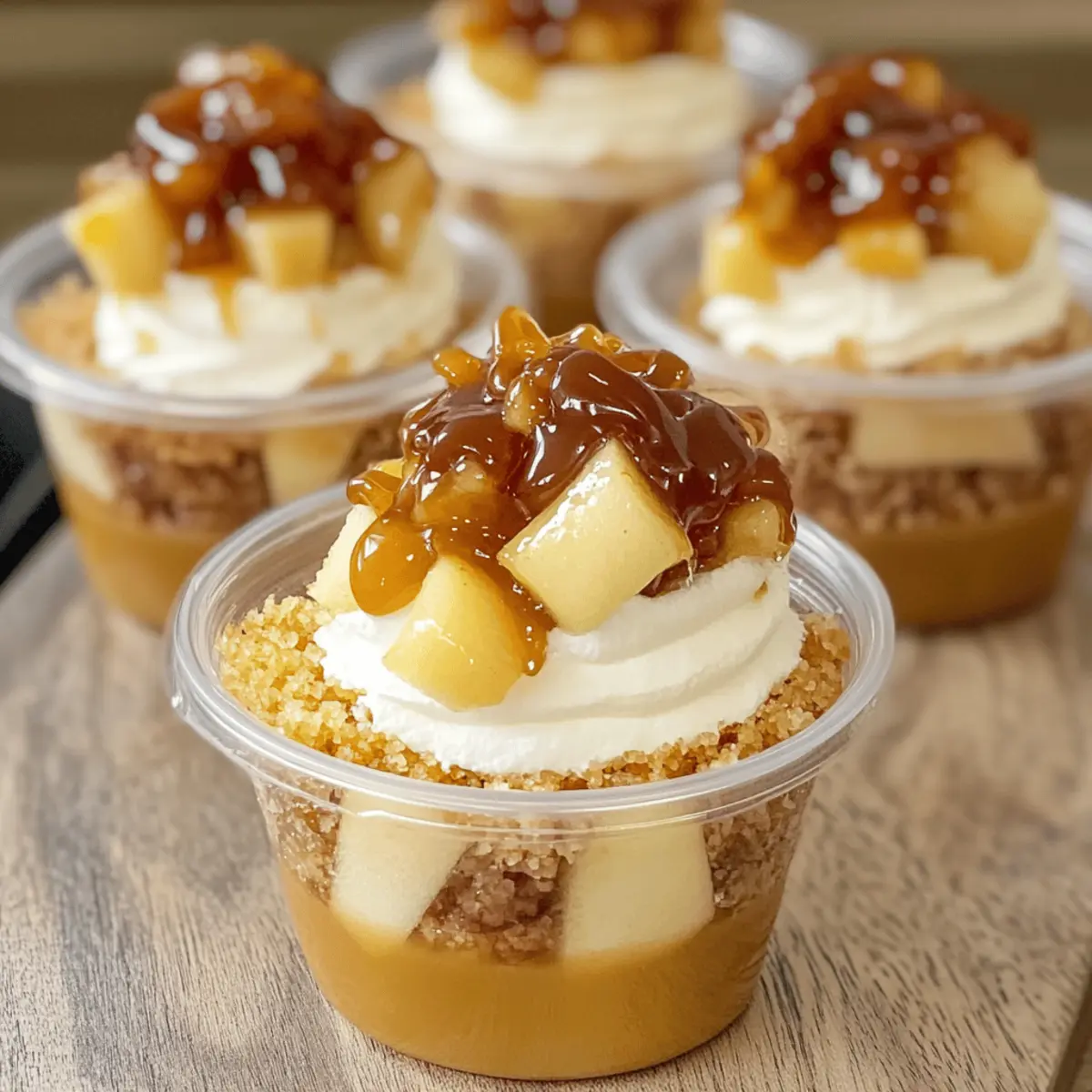 - Grab your favorite dessert cups and begin layering. Start by spooning in a generous portion of the caramelized apple mixture at the bottom. Then, top it off with a fluffy dollop of whipped cream.