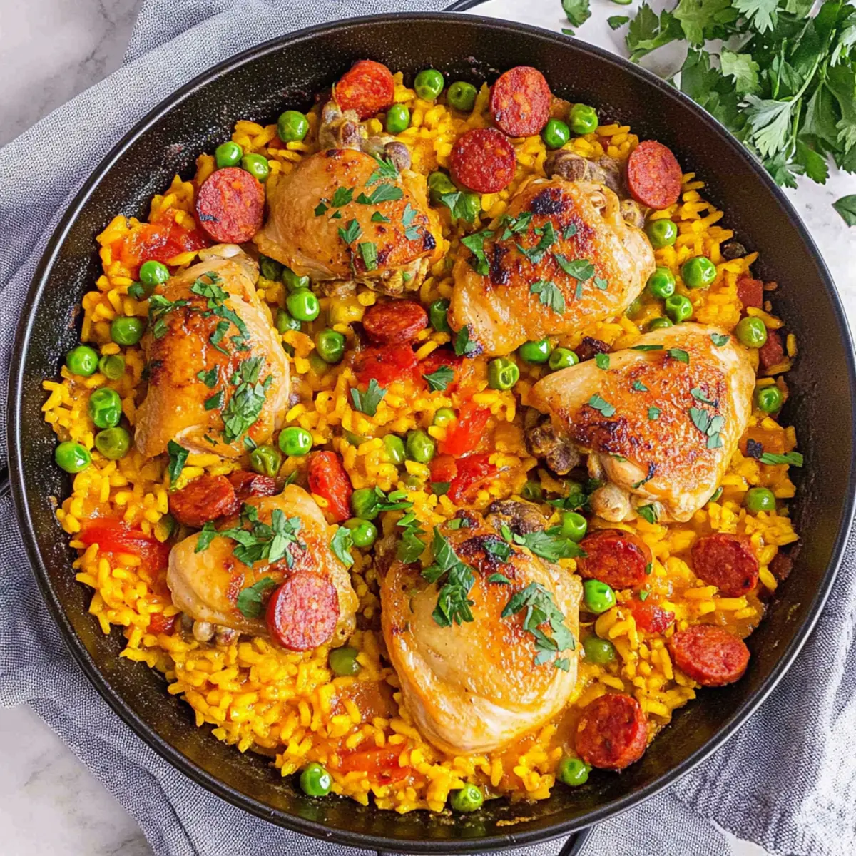 This Chicken and Chorizo Paella is a flavorful one-pan dinner, perfect for impressing guests and family alike.