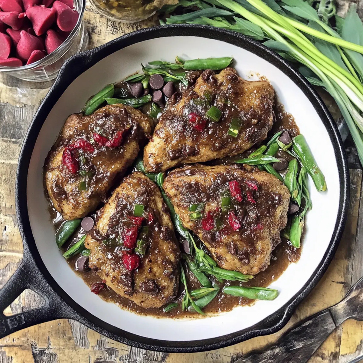 Once the chicken is fully cooked, remove the skillet from heat. Garnish your Skillet Roasted Rhubarb Chicken with freshly chopped herbs like thyme or rosemary for an aromatic finish. For an extra burst of flavor, add a sprinkle of lemon zest. Serve warm, and enjoy a delightful blend of savory and sweet notes that this dish brings to your table!