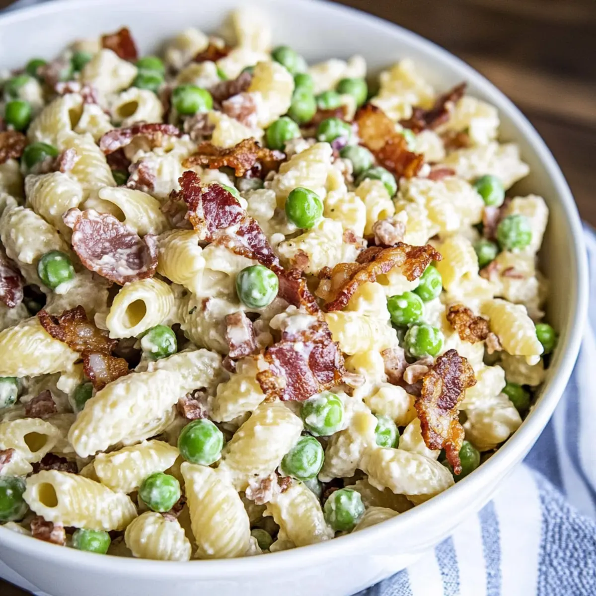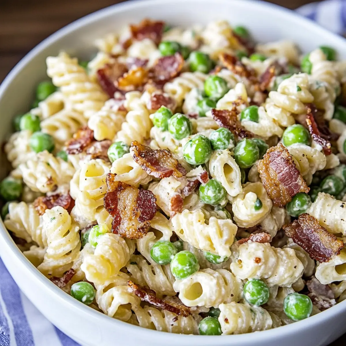 As I stood in my kitchen, the scent of sizzling bacon wafted through the air, instantly transporting me to summer picnics and family barbecues. This Creamy Pasta Salad with Crispy Bacon and Peas is a nostalgic favorite, bursting with all the classic flavors that make gatherings memorable. Not only is this dish quick and easy to whip up, but it’s also incredibly customizable—just toss in your favorite veggies or proteins for a personal touch! The delightful combo of al dente pasta, sweet peas, and crunchy bacon, all enveloped in a silky dressing, makes it perfect for everything from potlucks to dinner parties. Are you ready to dive into this creamy comfort? Let’s create a dish that will have everyone coming back for seconds!