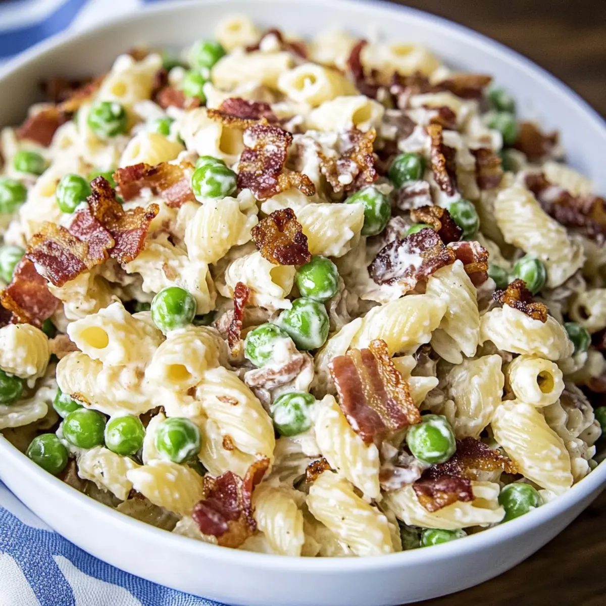 These Creamy Pasta Salad components are perfect for meal prep, saving you time and hassle on busy weeknights! You can cook and cool the pasta up to 24 hours in advance and store it in an airtight container in the refrigerator. Similarly, you can prepare the dressing up to 3 days ahead; just keep it sealed and refrigerate, as this will keep it fresh and flavorful. When it’s time to serve, combine the pasta with thawed peas and crumbled bacon, then toss with the prepared dressing. For optimal quality, add a splash of fresh dressing right before serving to ensure the salad stays creamy and delicious. Enjoy a quick, satisfying dish that will impress everyone!