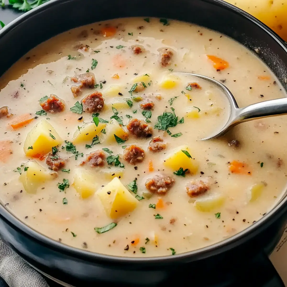 - Ladle the Creamy Sausage Potato Soup into warm bowls. Garnish with fresh herbs and serve with hearty buttered bread for dipping.