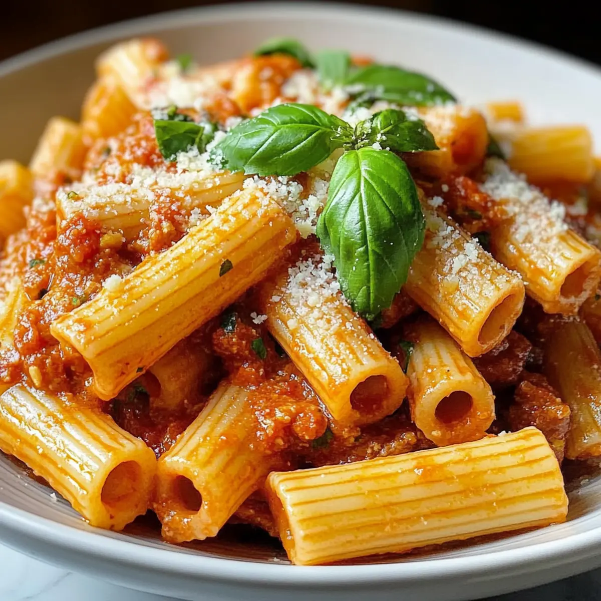- Rigatoni Pasta – The perfect shape to hold that luscious sauce; can be swapped for penne or ziti if desired.