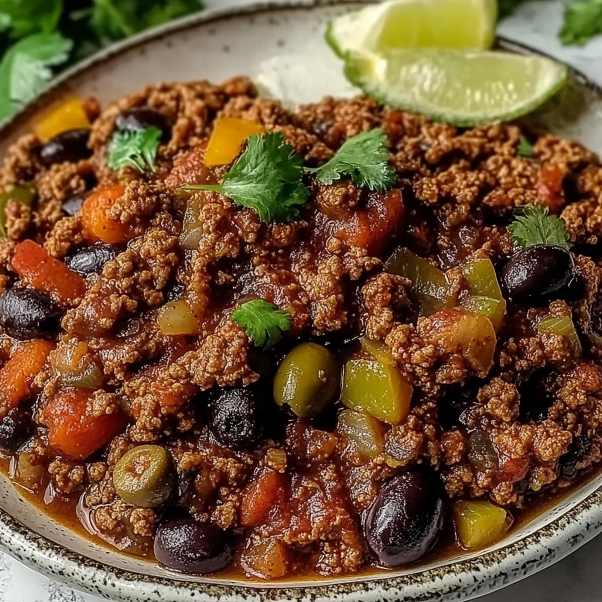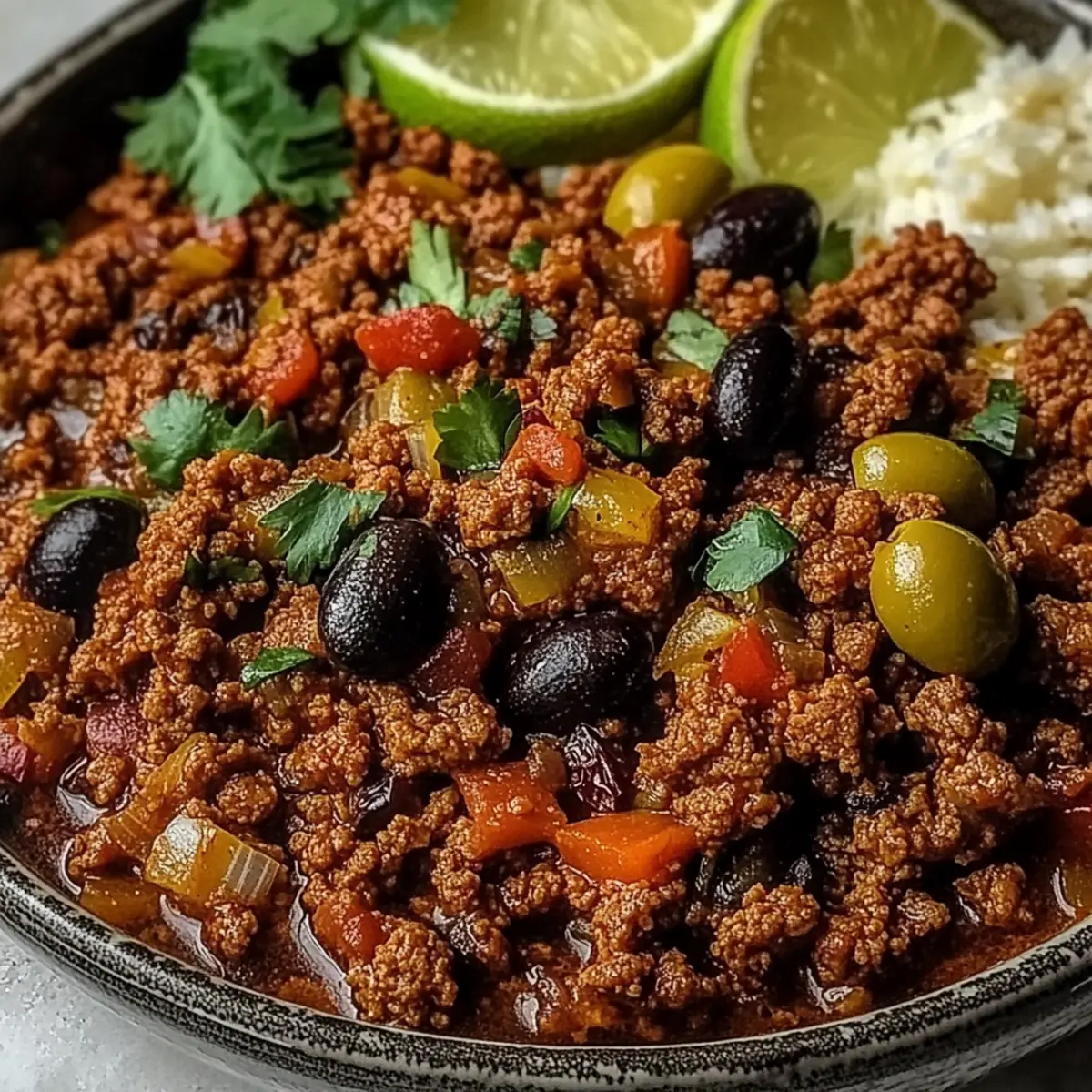 Homestyle Comfort: Each bite of Cuban Beef Picadillo is a warm embrace, combining hearty ground beef with sweet raisins and zesty olives for a taste of home.