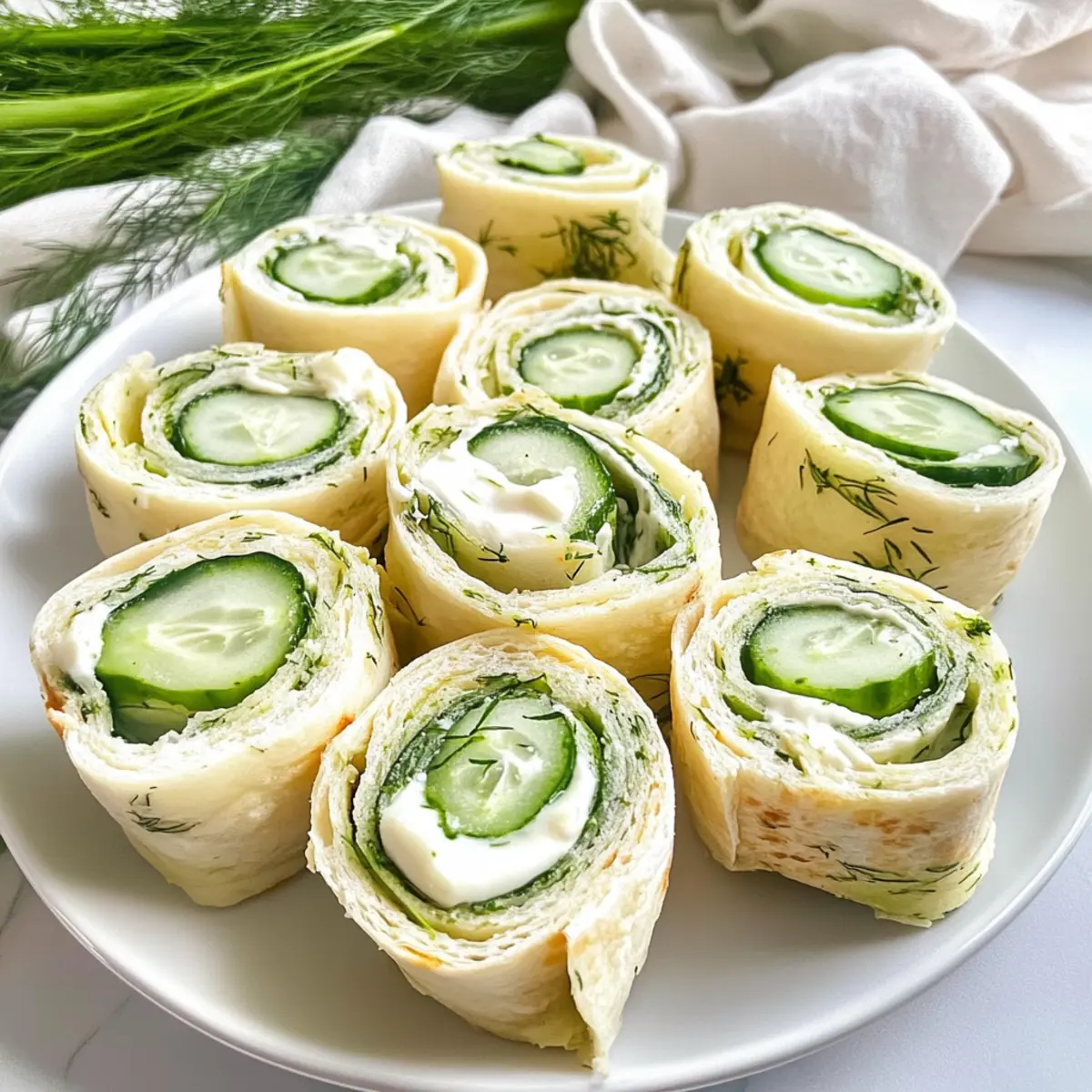 Effortless Preparation: With no cooking required, these Cucumber Dill Pinwheels come together in no time. Flavorful Freshness: The crisp cucumber pairs beautifully with the tangy cream cheese and dill, creating a refreshing burst in every bite. Make-Ahead Magic: Prep them a day in advance; they only get better as the flavors meld. Crowd Favorite: Whether at a picnic or casual gathering, these pinwheels will impress guests of all ages. For more quick and crowd-pleasing options, check out our Dill Pickle Soup or discover the delightful flavors of a Salvadoran Quesadilla.