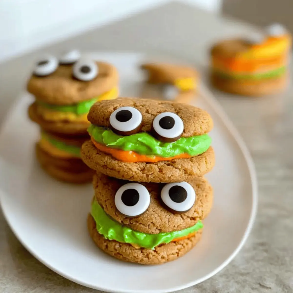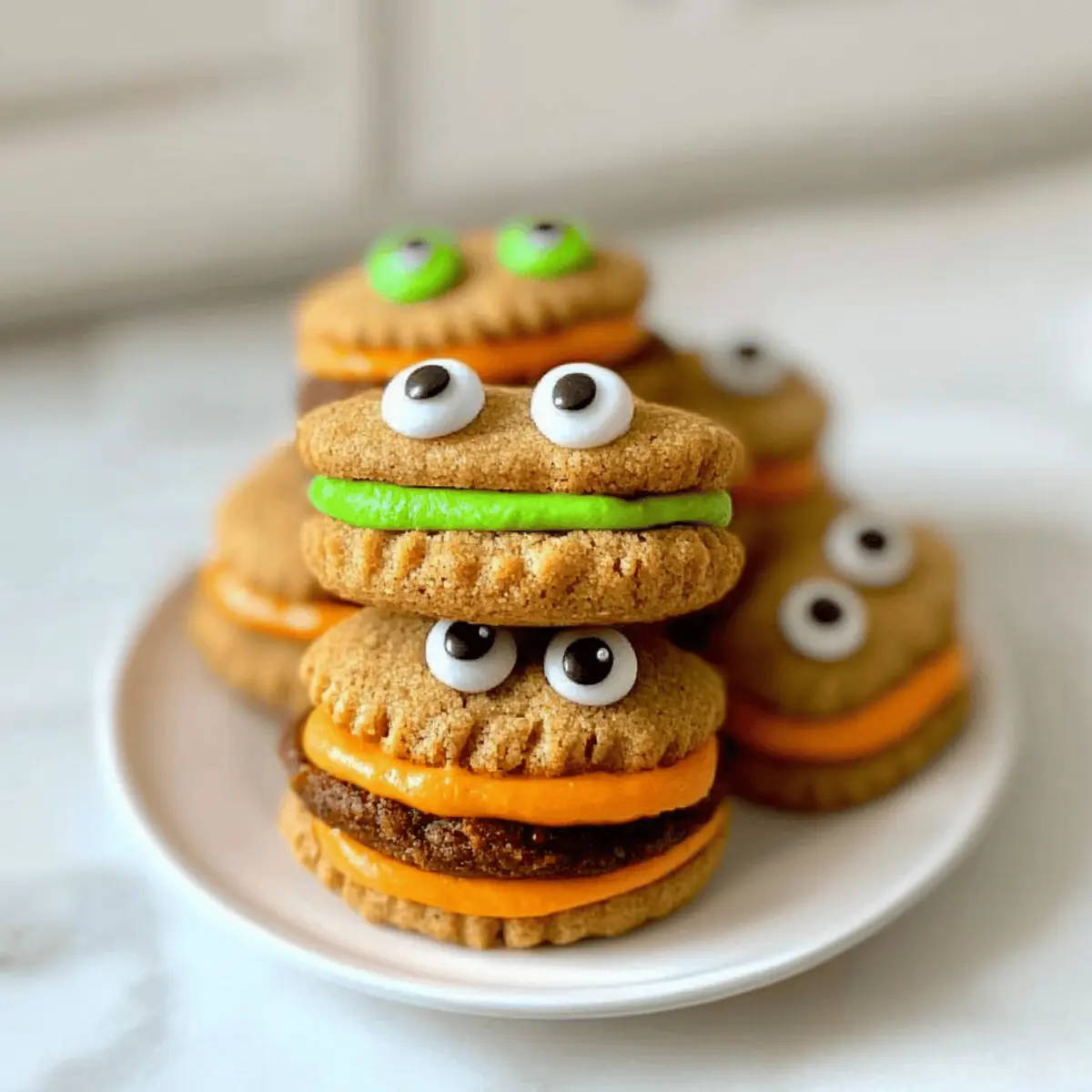 Cute Monster Sandwich Cookies are delightful no-bake treats that bring joy to Halloween gatherings, combining crunchy cookies, fluffy frosting, and fun candy eyes.