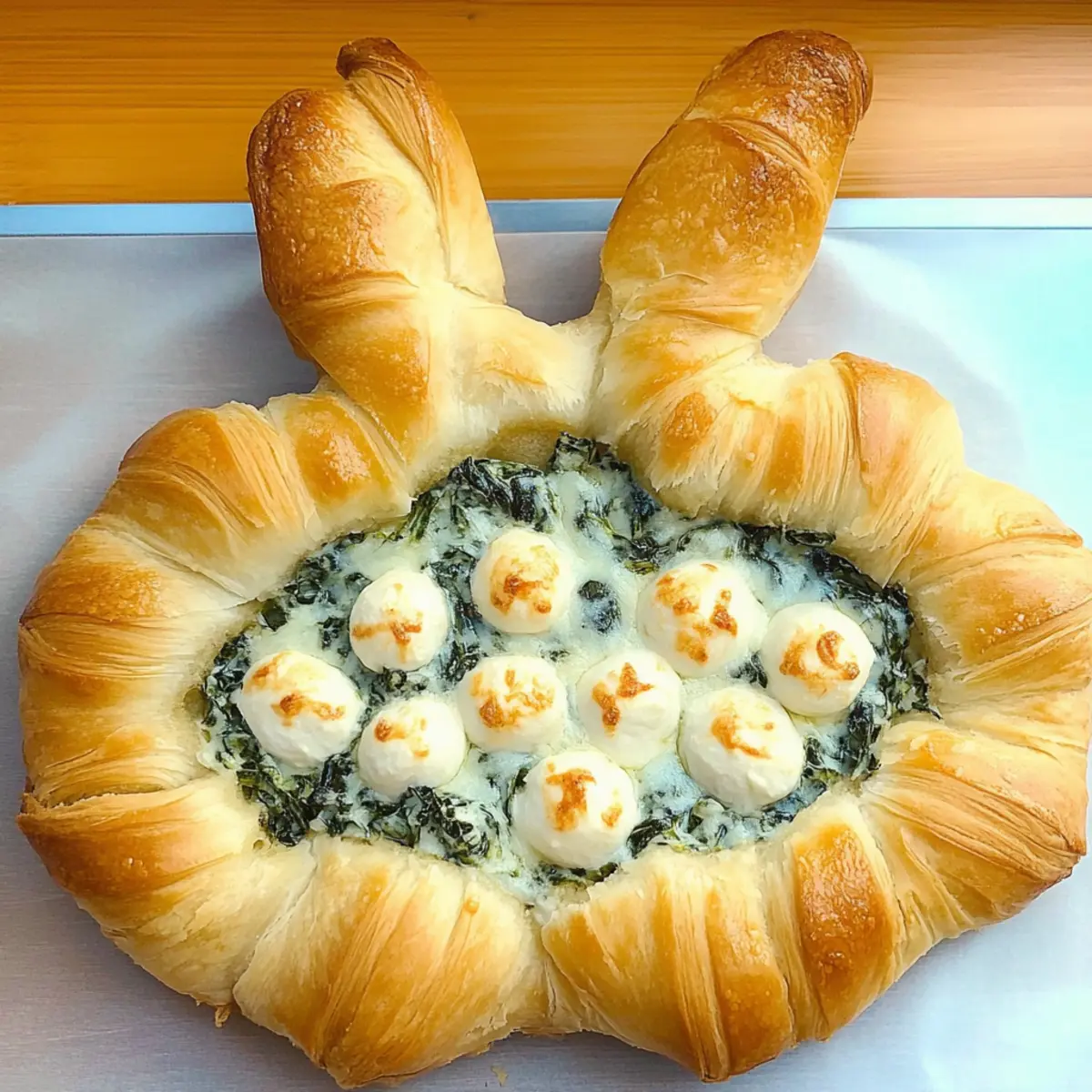 As I gathered ingredients for our Easter celebration, a cute idea popped into my head—why not create an appetizer that’s as festive as it is delicious? Enter the Cheesy Easter Bunny Spinach Dip, an enchanting and wholesome dish that instantly elevates any gathering. This vibrant dip is nestled within flaky crescent rolls, making it not only quick to prepare but a total crowd-pleaser that brings smiles all around. With every scoop of the warm, creamy spinach filling, your family and friends will be in for a flavorful surprise that keeps them coming back for more. Ready to impress your guests with this adorable twist on a classic? Let’s dive into the recipe that will make your Easter feast unforgettable!