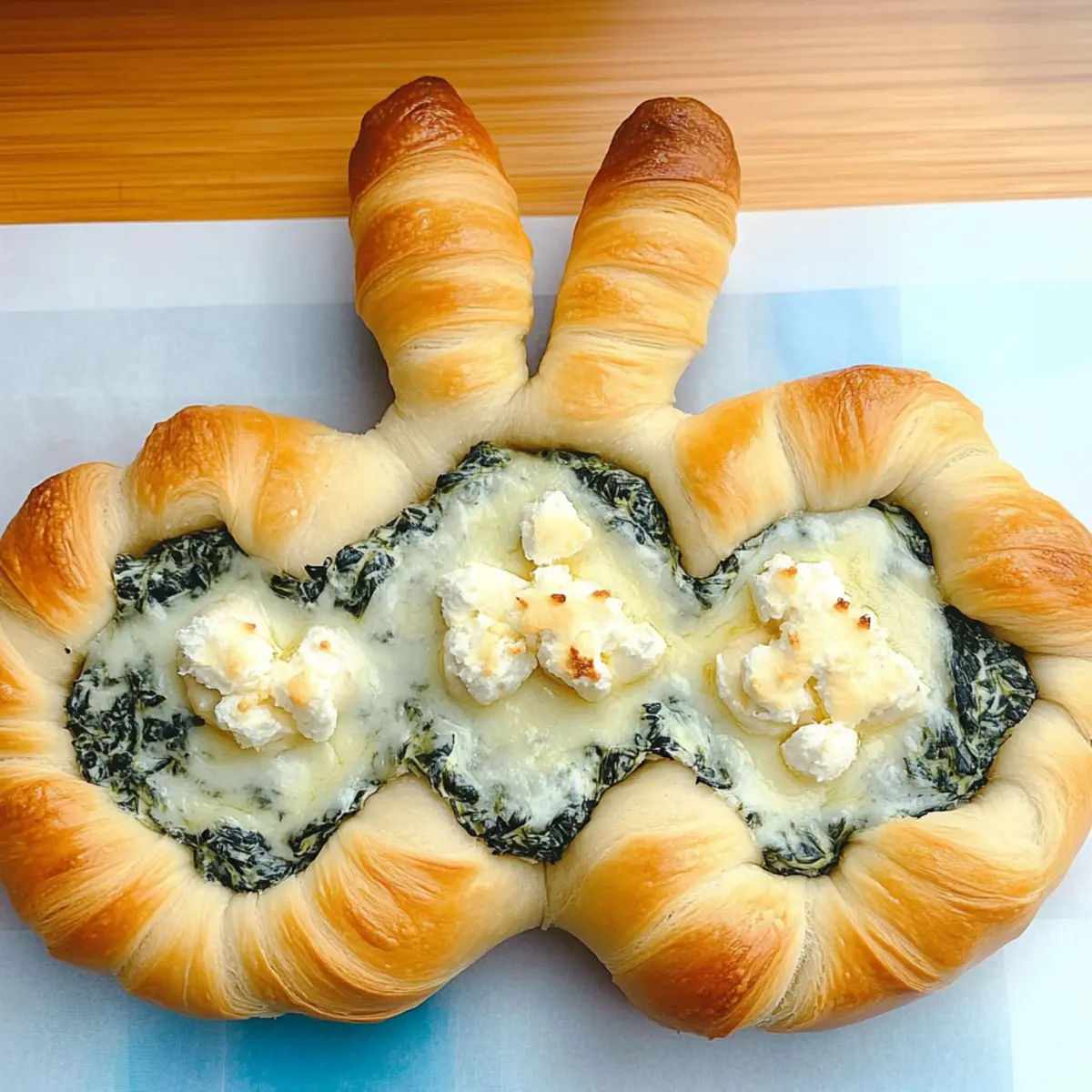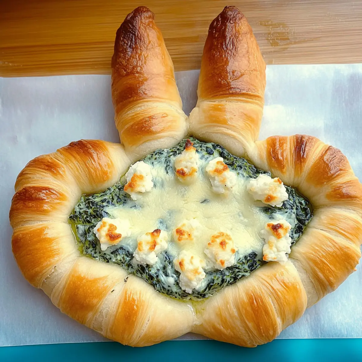 Unroll the crescent roll sheets and cut them into long strips, rolling each strip into ropes about 18 inches long. On a parchment-lined baking sheet, shape the ropes into a bunny figure, ensuring to form floppy ears with extra dough. The Easter Bunny Spinach Dip shape should be playful and inviting!