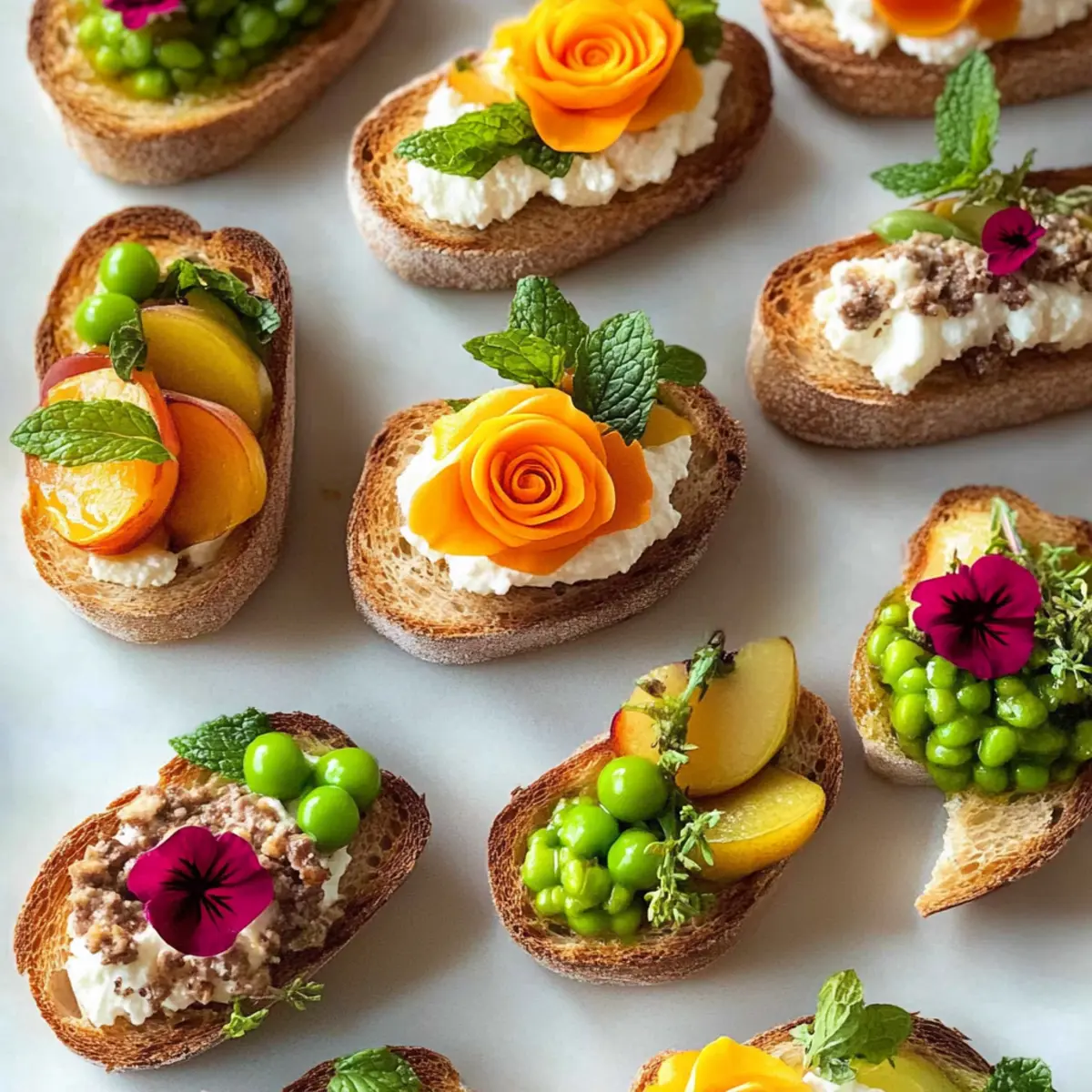 As I strolled through the local farmer’s market, vibrant colors beckoned me from every stall. Fresh peas whispered promises of sweetness, while golden peaches glistened in the sun. These inspirations led me to create my Easter Crostini, a delightful trio that’s not only beautiful but also incredibly easy to prepare. With their cheerful mix of flavors—a refreshing spring pea and mint combo, a rich mushroom pâté dressed with delicate carrot roses, and the juicy allure of peach and ricotta—these appetizers are perfect for any spring gathering. You’ll love how they capture the essence of the season while providing a festive touch that will impress your guests. Plus, they’re vegetarian-friendly, with one option being completely vegan, making them a versatile choice for everyone at your table. Who’s ready to bring some festive flair to their spread?