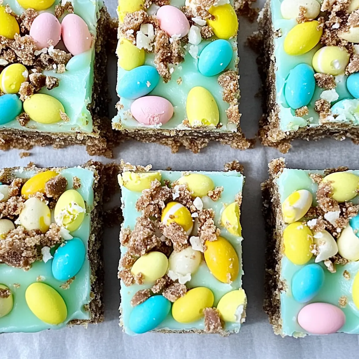 Easter Sugar Cookie Bars are the perfect festive treat, combining a soft buttery base with creamy frosting and colorful Cadbury Mini Eggs.