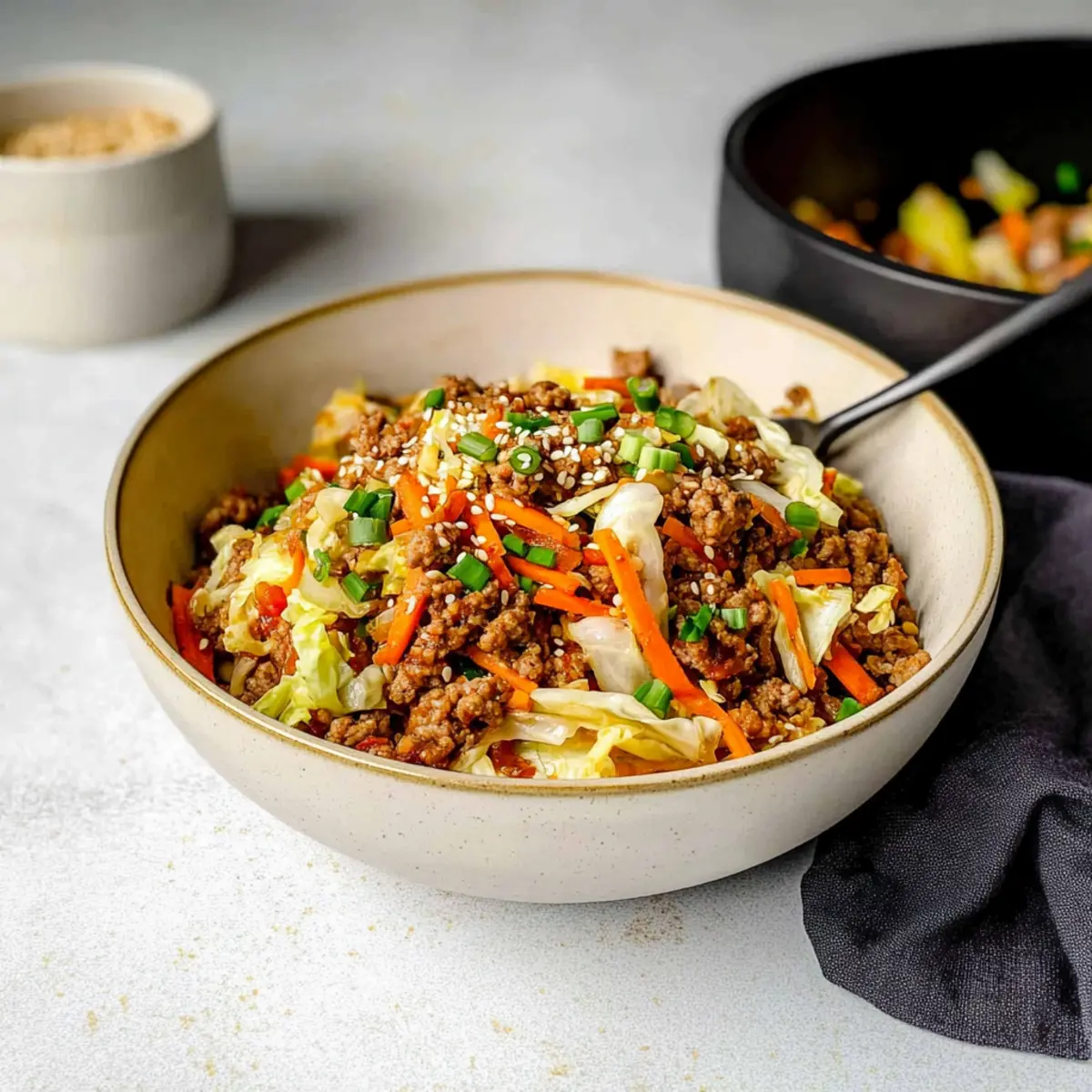 • Garnish Generously: Use chopped green onions and sesame seeds to finish your dish. They add color, freshness, and a delightful crunch to your Egg Roll in a Bowl!