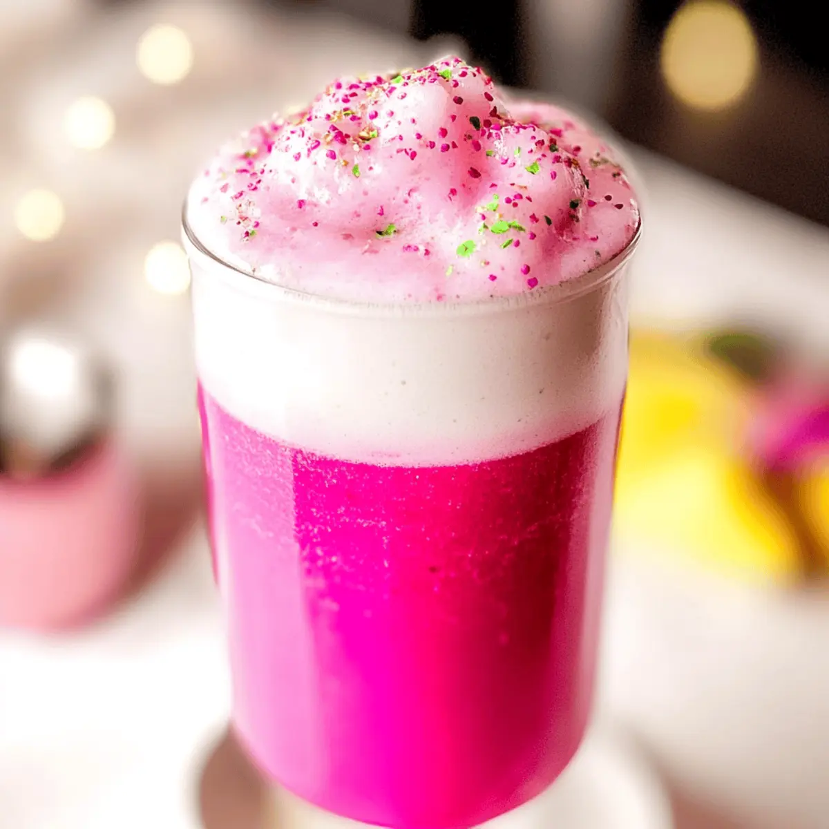 - Finally, delicately top the drink with the fluffy strawberry cold foam and, for a whimsical touch, sprinkle pink and green sprinkles over the foam to complete Glinda's Pink Potion masterpiece.