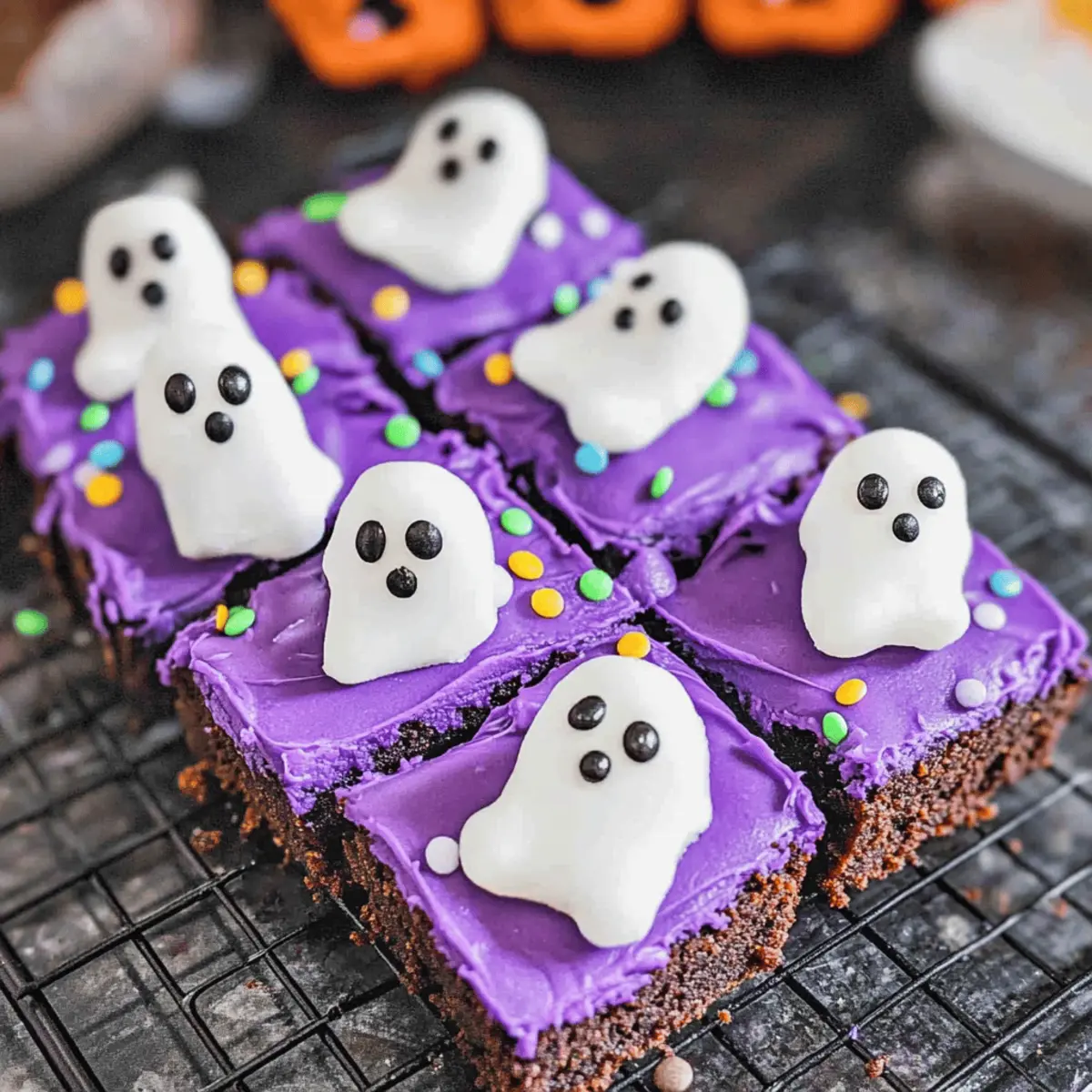 Festively Themed: The vibrant purple frosting and cute ghost decorations make these brownies perfect for any Halloween gathering, guaranteed to catch the eye of your guests.