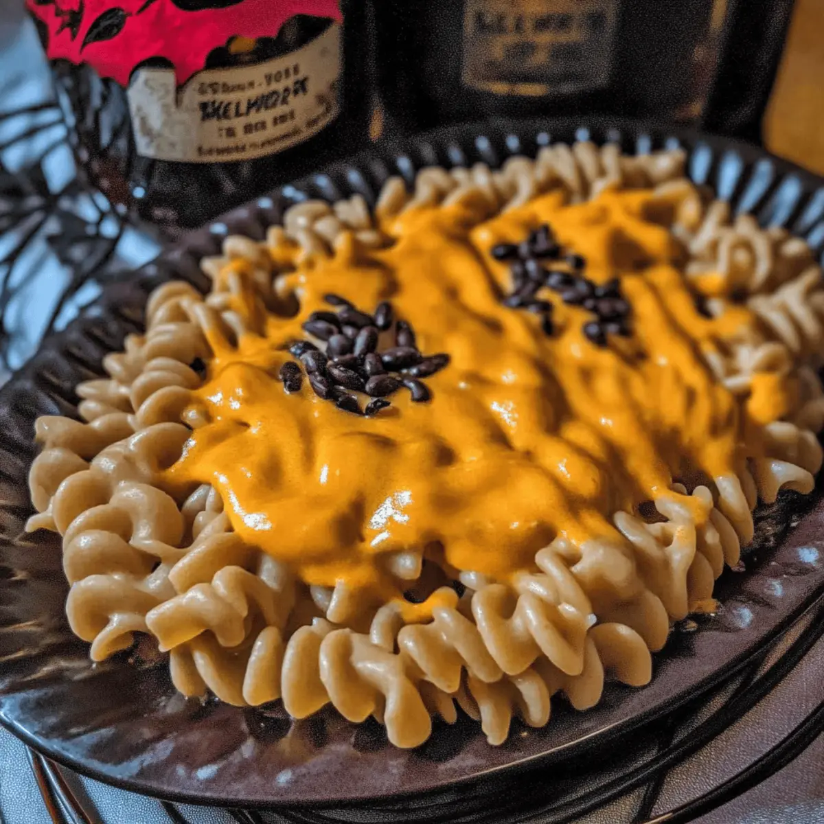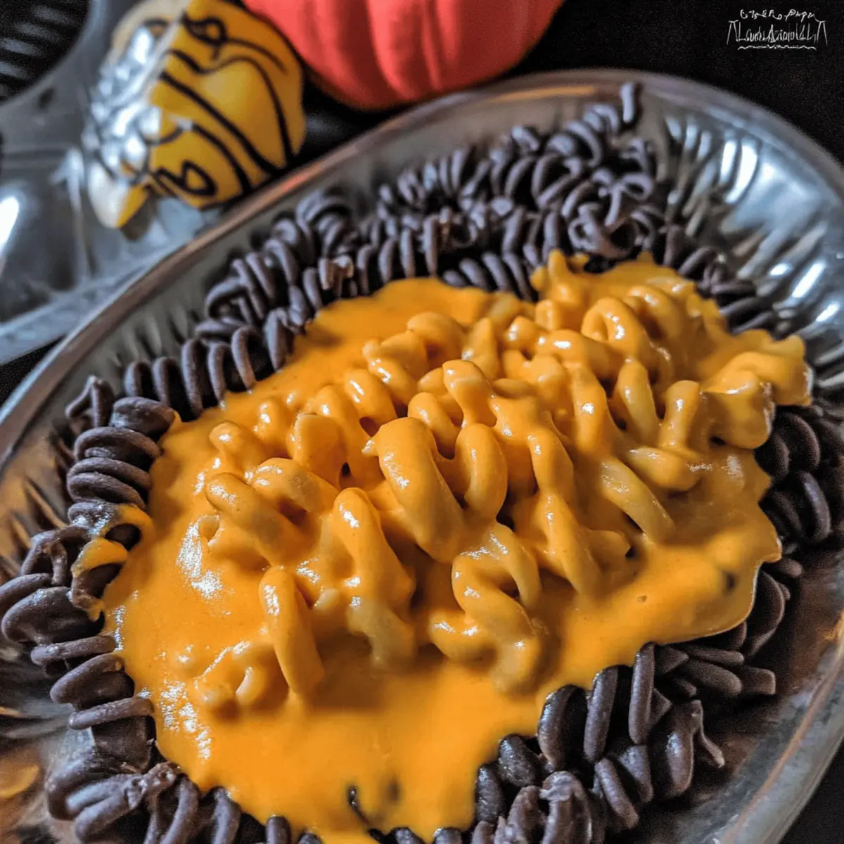 Sauce Distribution: For an eye-catching serve, drizzle the cheese sauce on top of the pasta right before serving, making that beautiful orange color pop against the black rotini.