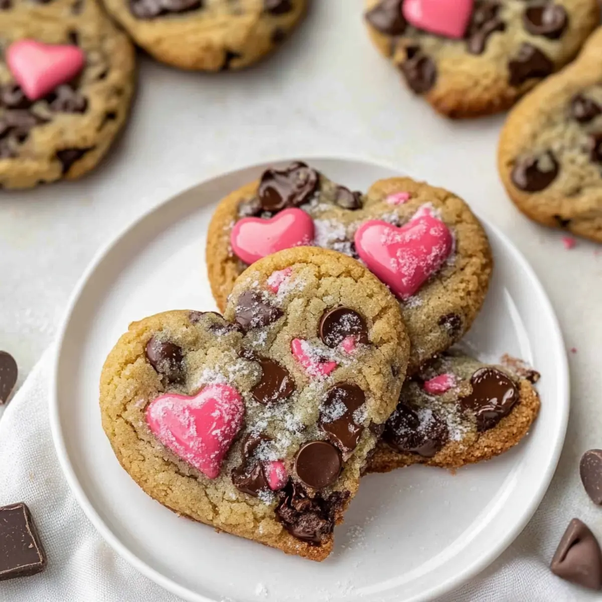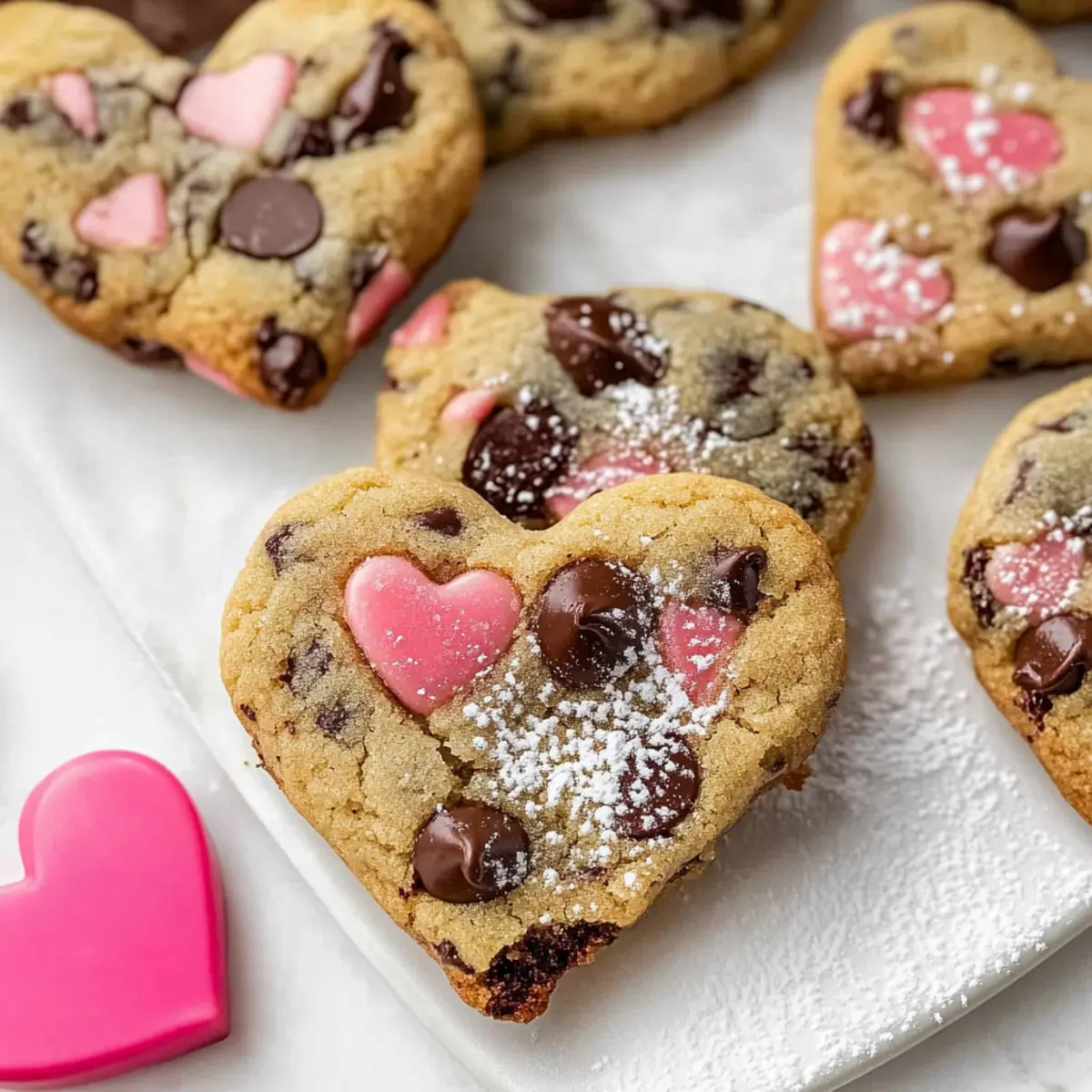 By blending textures and flavors, you’ll create a memorable spread that transforms your heart-shaped chocolate chip cookies into the center of an enchanting dessert experience!