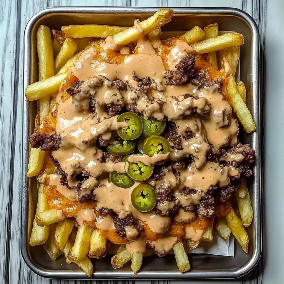 - Serve topped with Thousand Island dressing, pickles, and jalapeños. Enjoy the combination of crispy, cheesy, and beefy goodness!