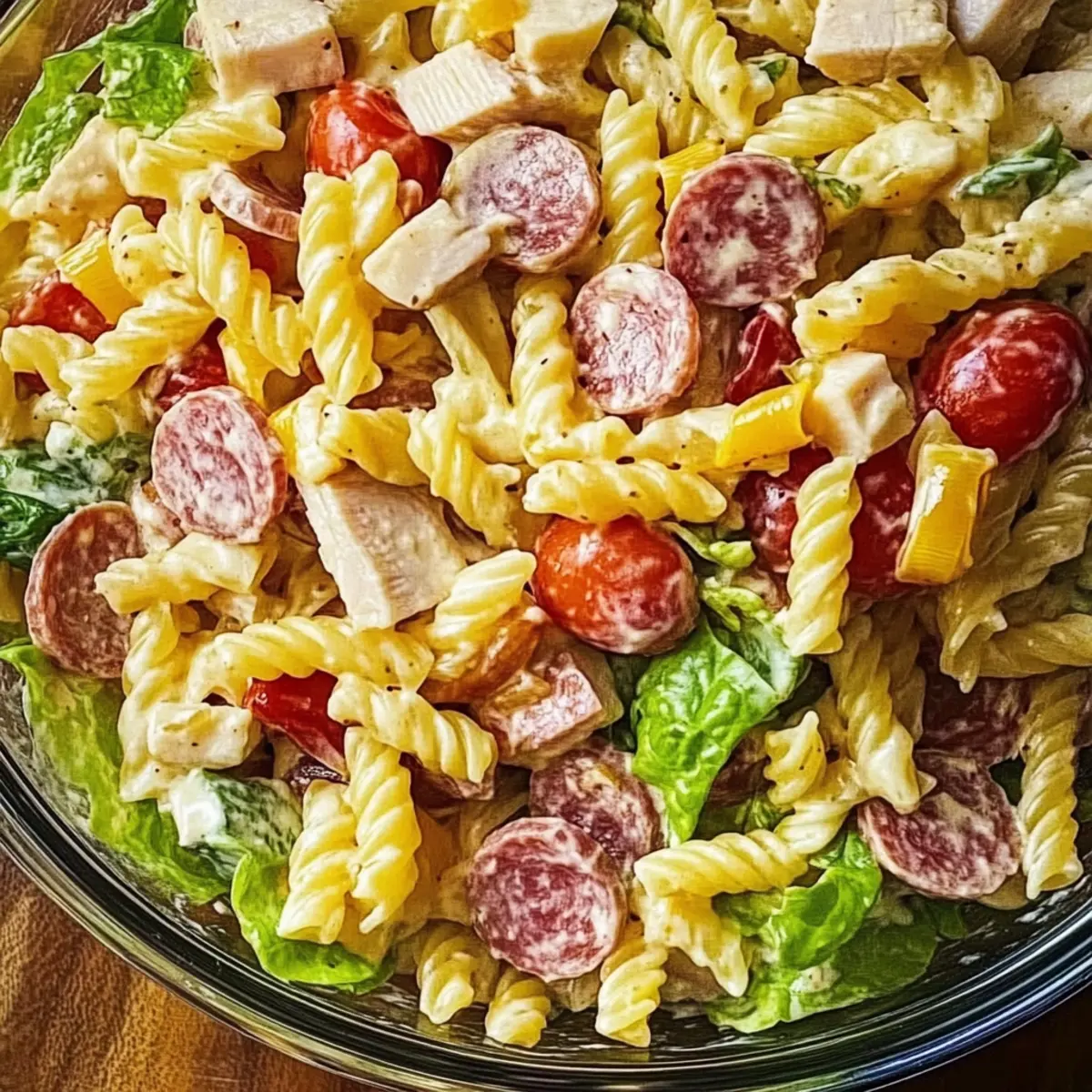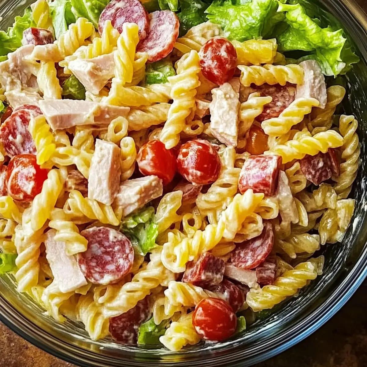 • Tangy Touch: Switch the cream-based dressing for a vinaigrette made with lemon juice and olive oil. This lightens the dish and adds a refreshing zing that pairs perfectly with the deli flavors.