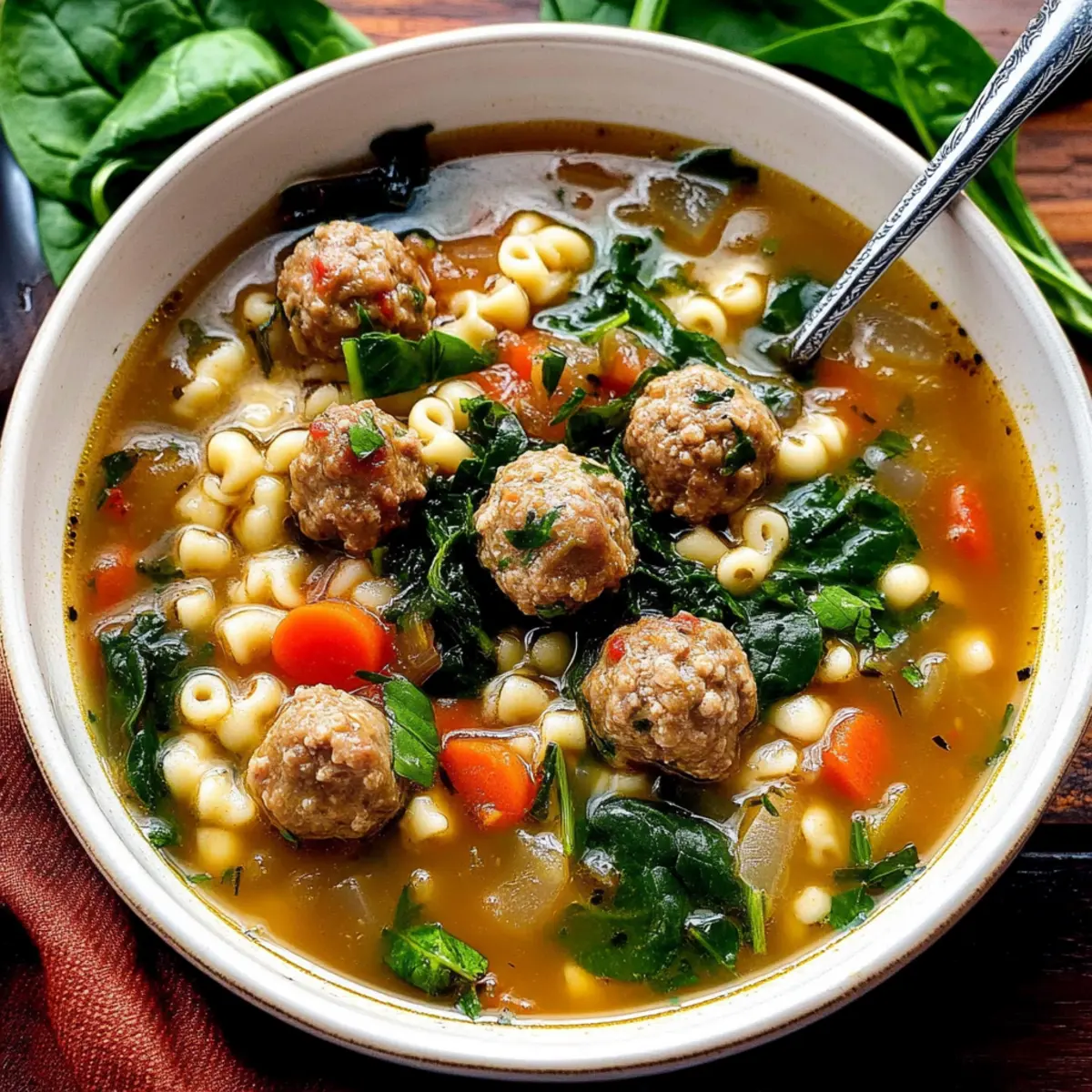 This Italian Wedding Soup is a comforting, hearty dish with meatballs, acini di pepe, and spinach, perfect for cozy nights.