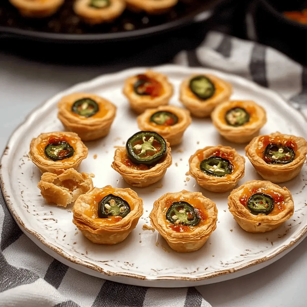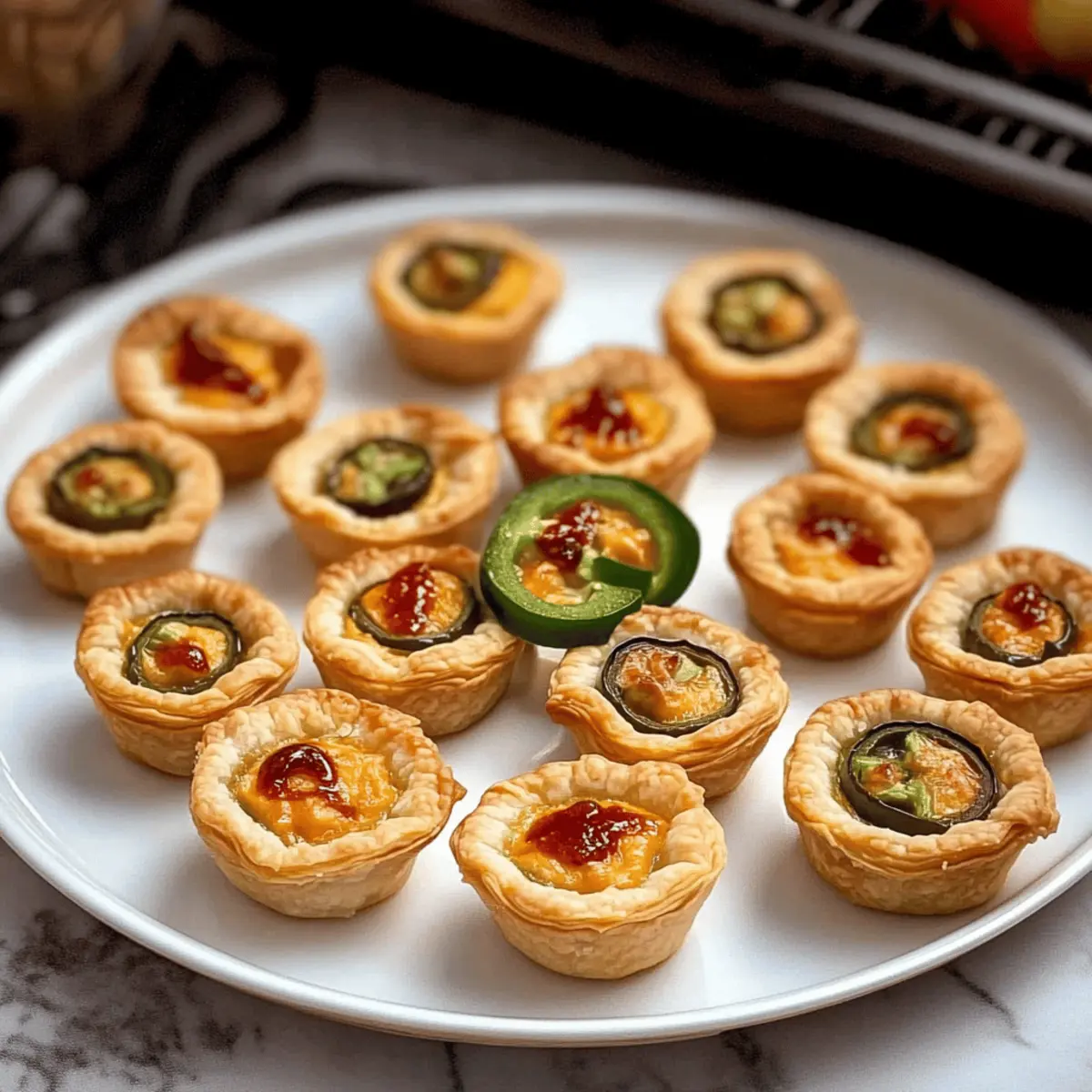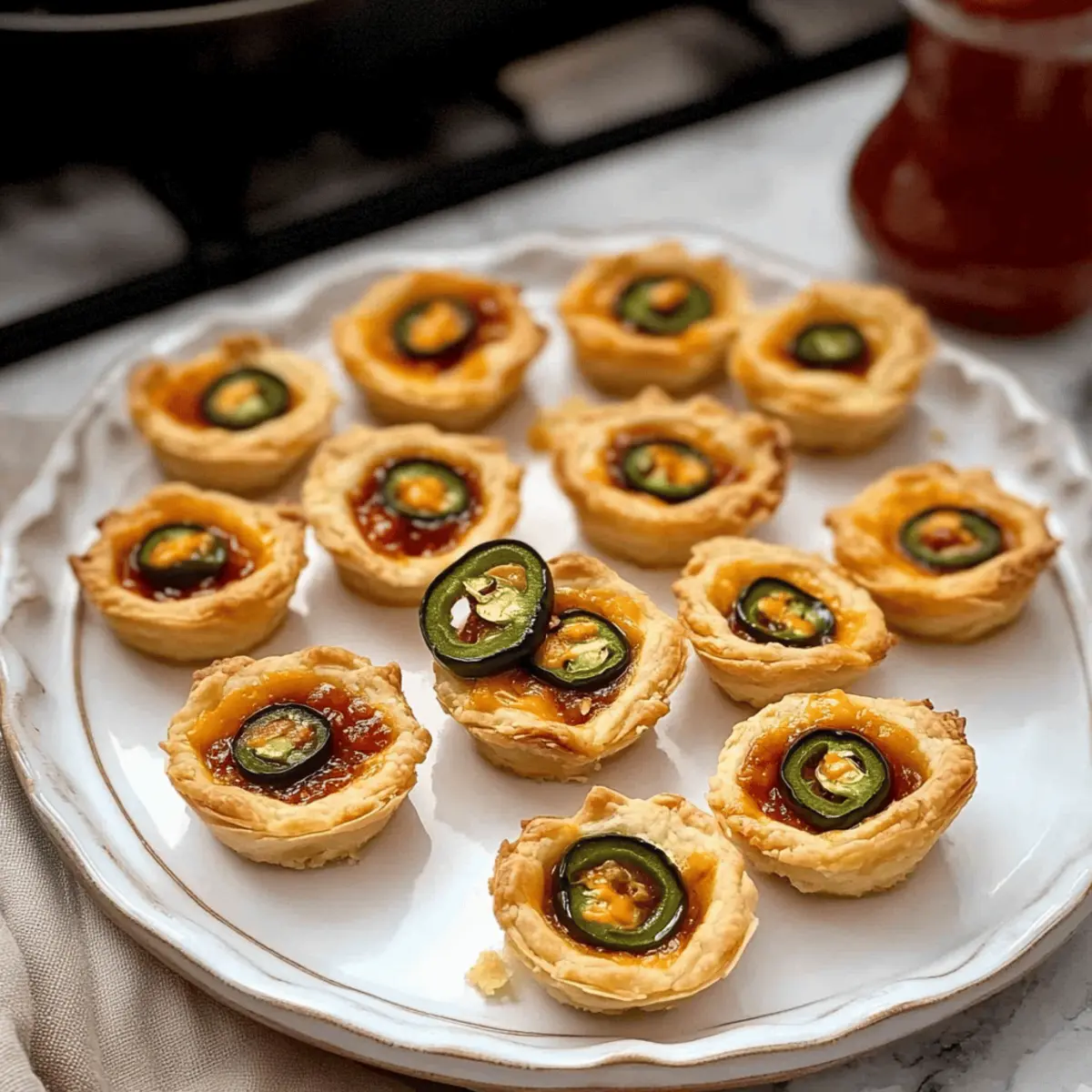 - Once the tarts are golden, remove them from the oven and allow them to cool slightly in the pan. Drizzle sweet chili sauce on top of each jalapeño slice.