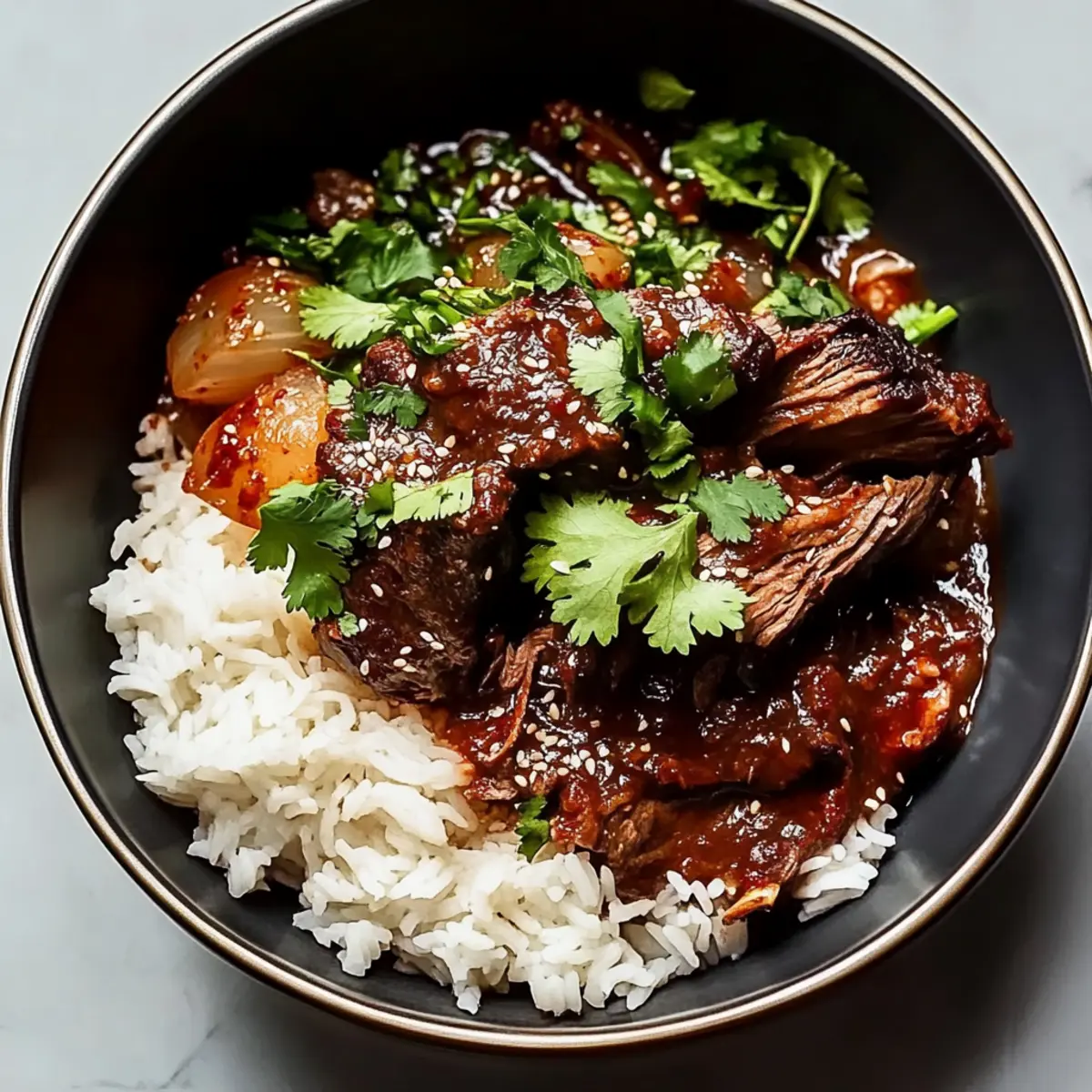 I recommend pairing it with fluffy jasmine rice and steamed vegetables for a complete meal. A side of kimchi adds a delightful tang that complements the savoriness of the pot roast beautifully!