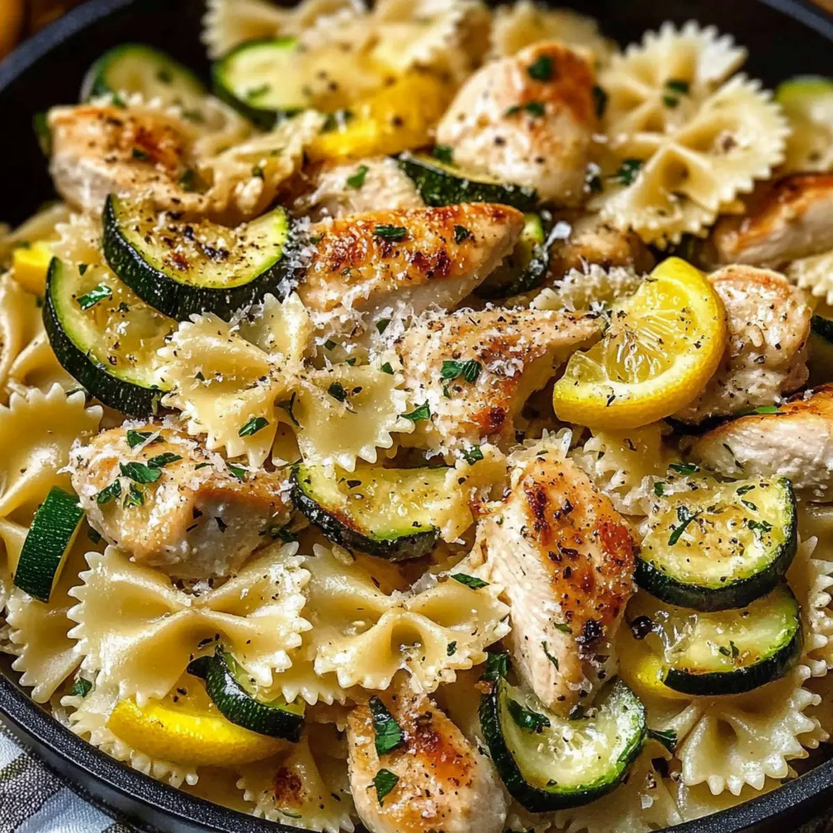 These Lemon Chicken Pasta preparations are perfect for busy home cooks looking to save time during the week! You can chop the zucchini and yellow squash, and season the chicken up to 24 hours in advance. Simply store the chopped vegetables and seasoned chicken in airtight containers in the refrigerator to maintain their freshness. The cooked pasta can also be refrigerated for up to 3 days; just toss it in a little olive oil to prevent sticking. When you’re ready to prepare the dish, sauté the vegetables and chicken as instructed, mix in the butter and lemon juice, then combine with the pasta and cheese. You’ll enjoy the same delicious, creamy flavor with much less effort!