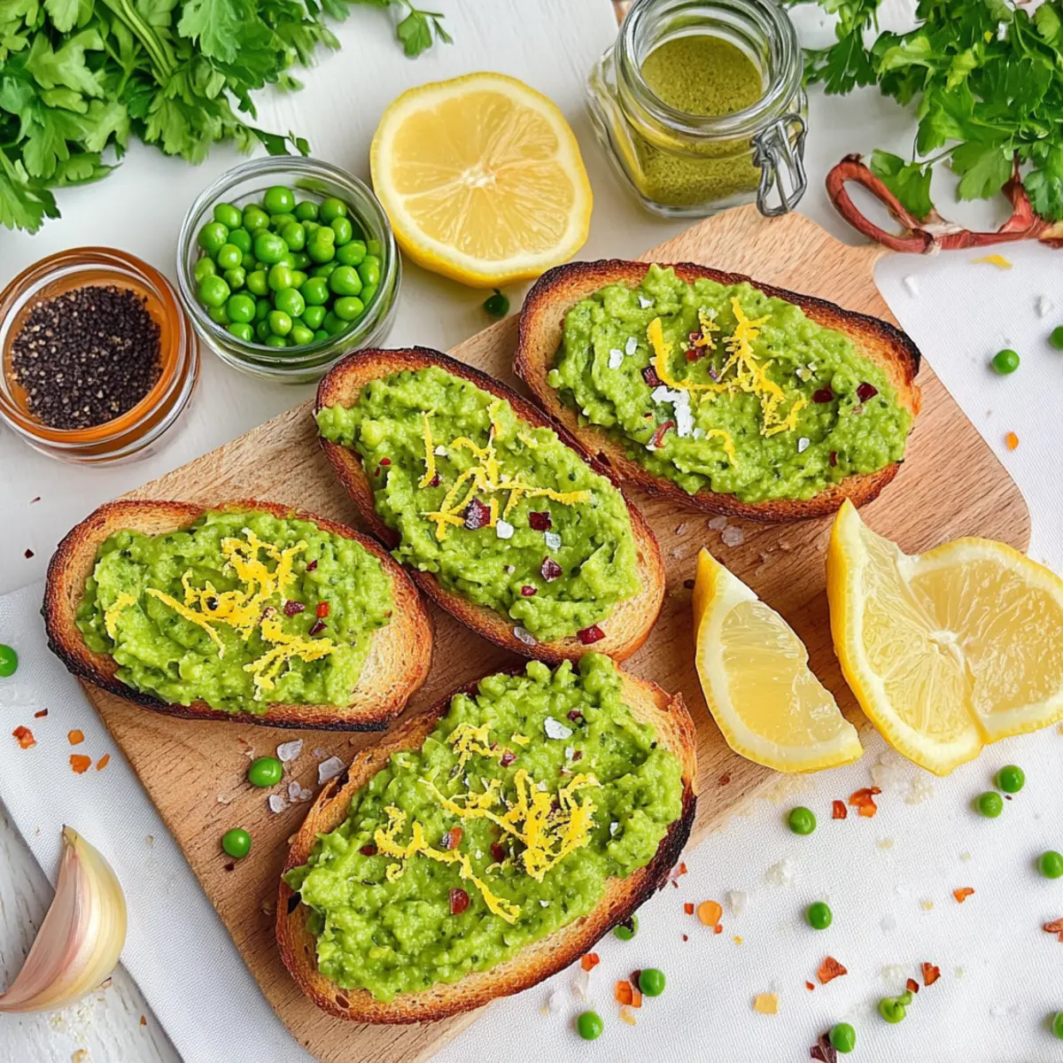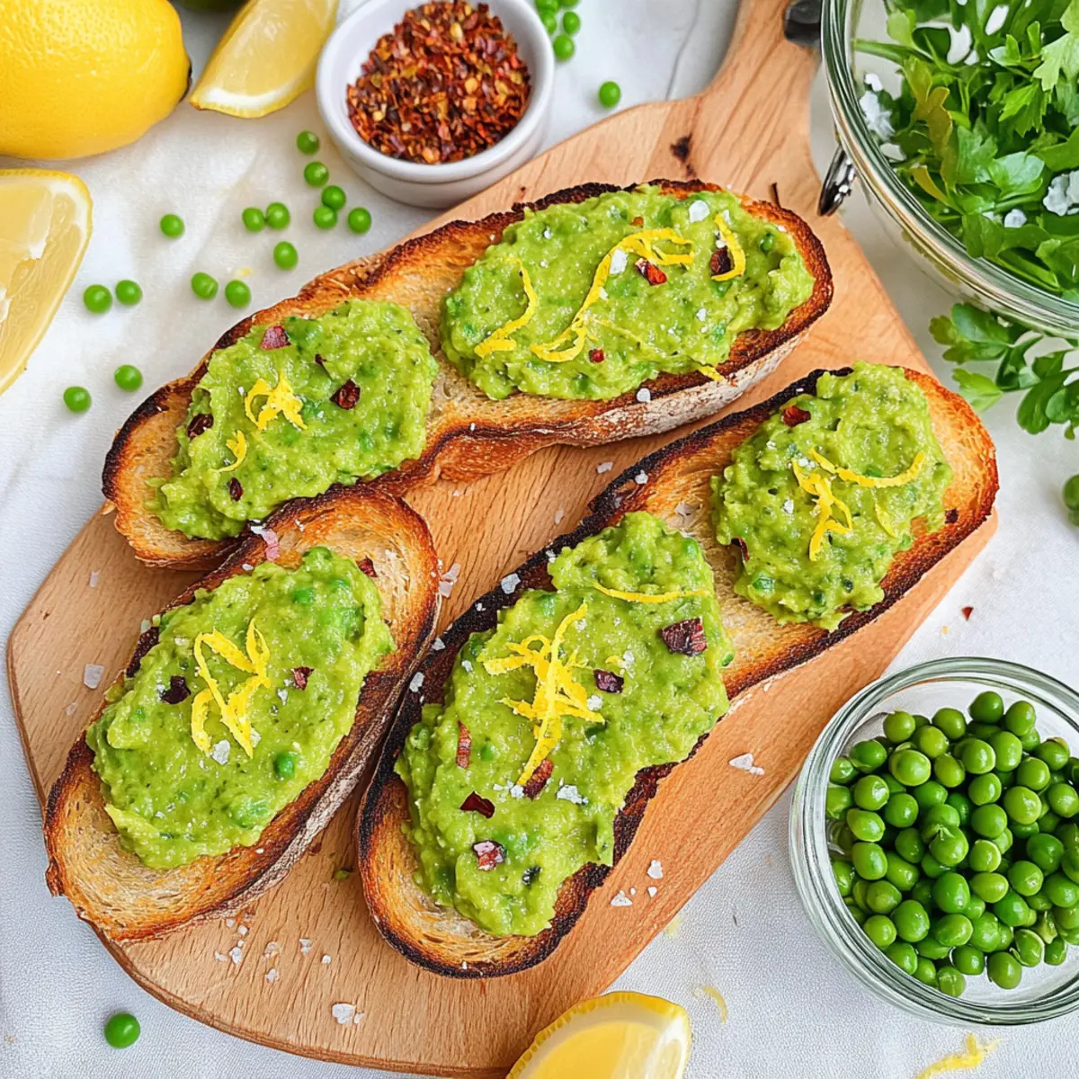 • Flavor Balancing: Adjust spices to your taste: If you’re unsure about the heat, start with less crushed red pepper and add more as needed to perfect your Lemon Pea Crostini.