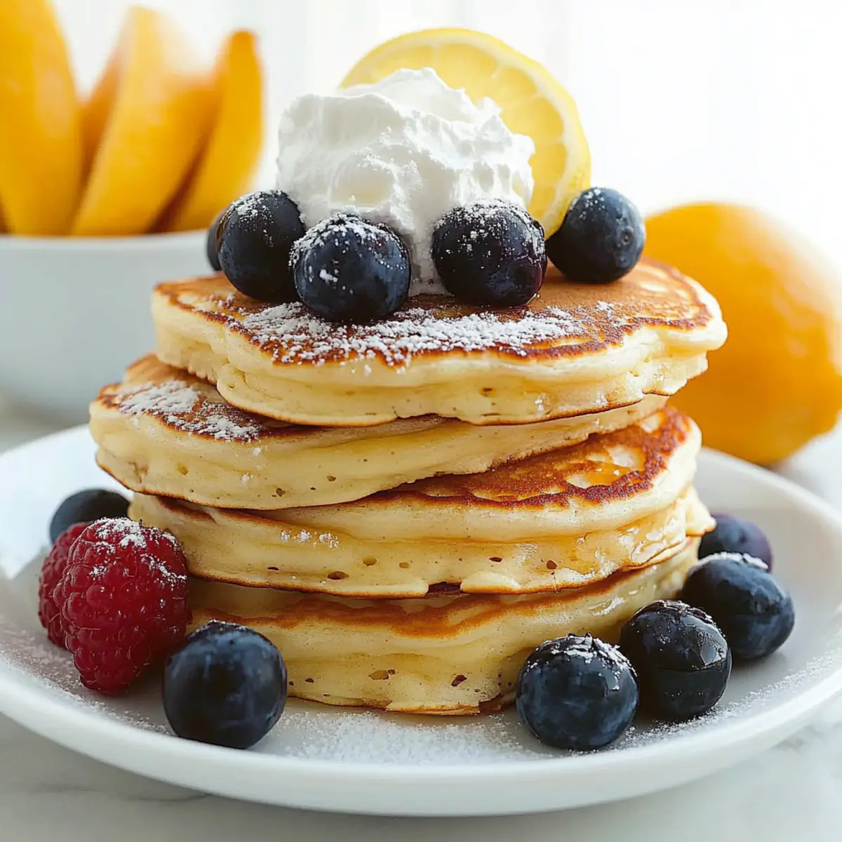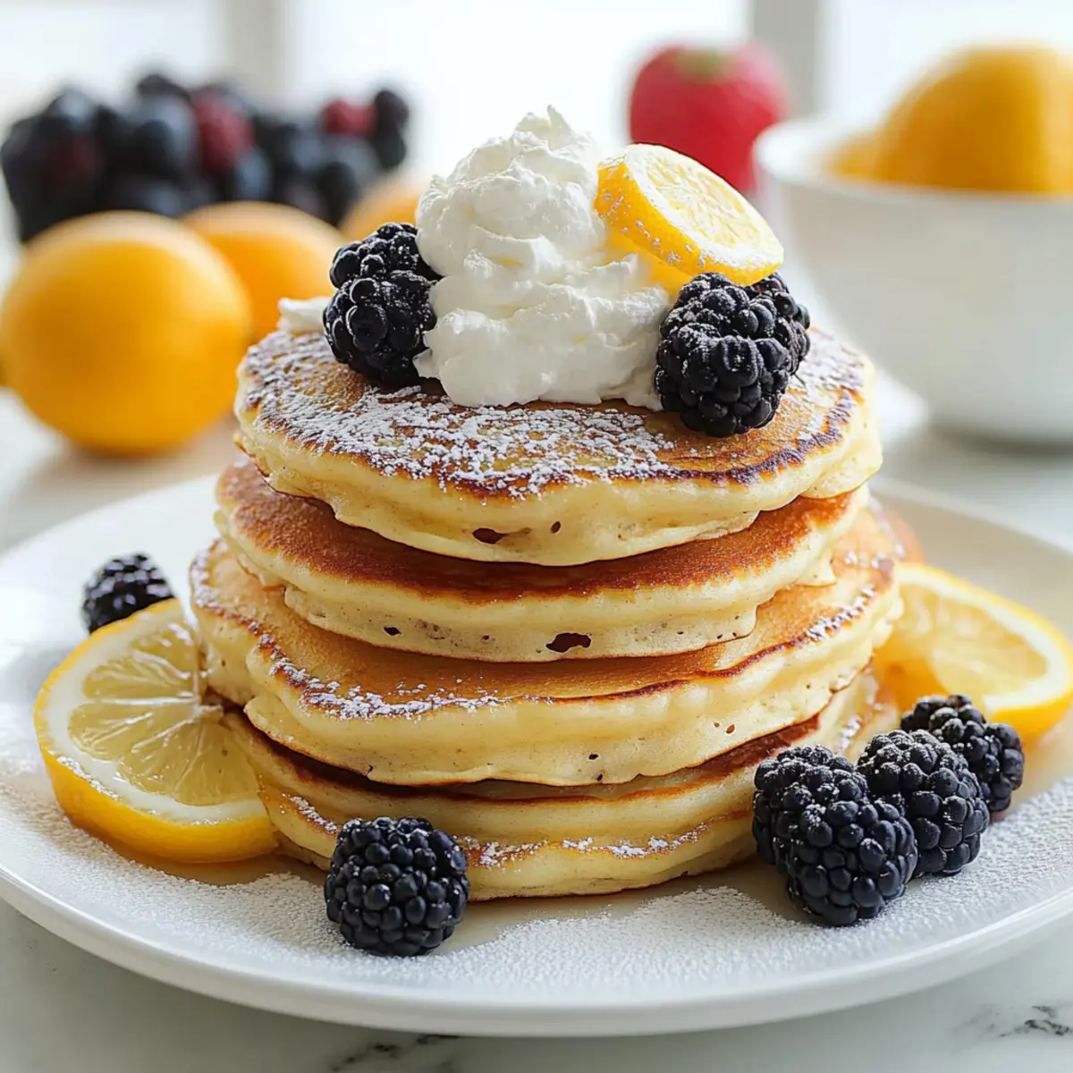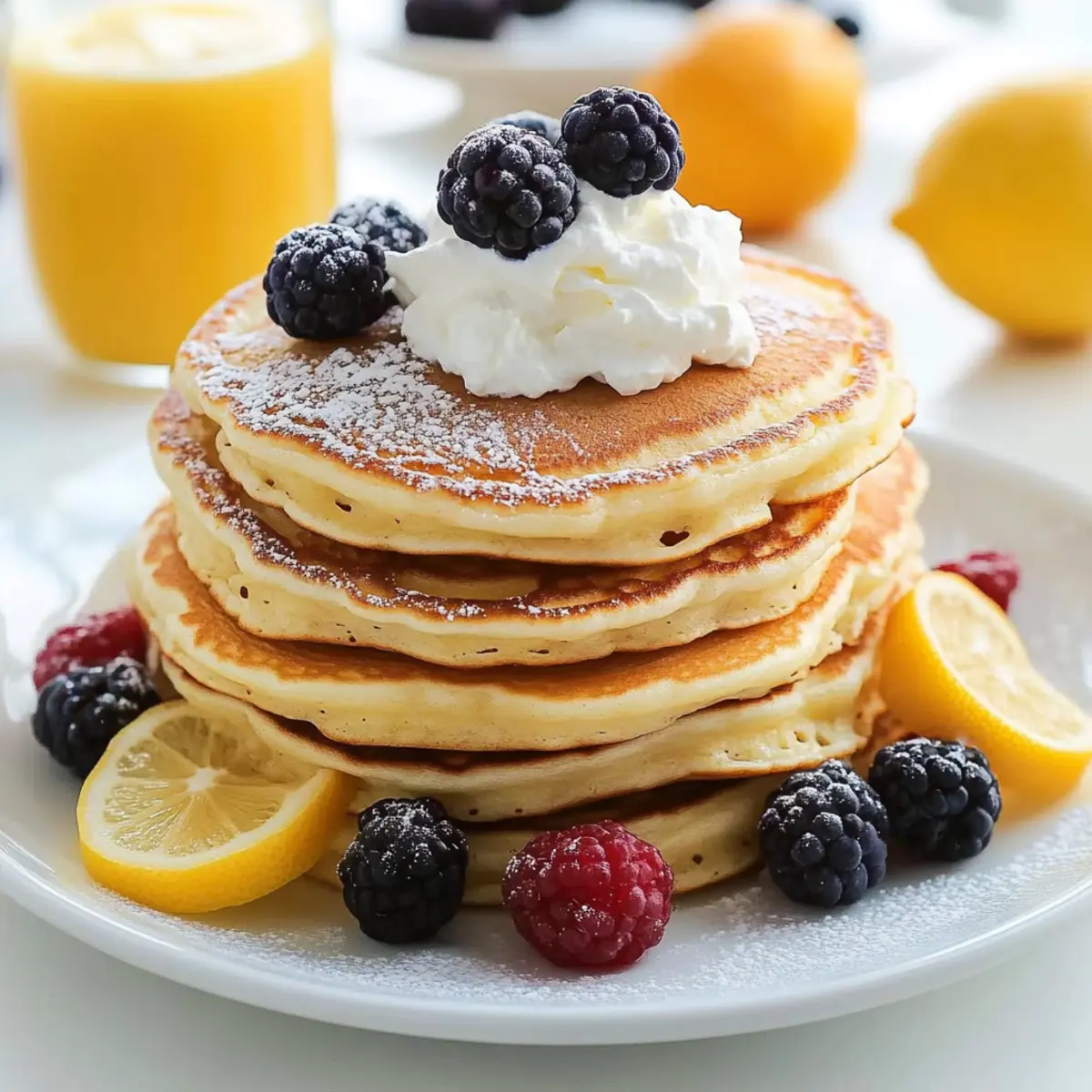 Herbal Tea: A warm cup of chamomile or mint tea pairs beautifully with the lemony goodness of the pancakes, rounding out a soothing breakfast experience.