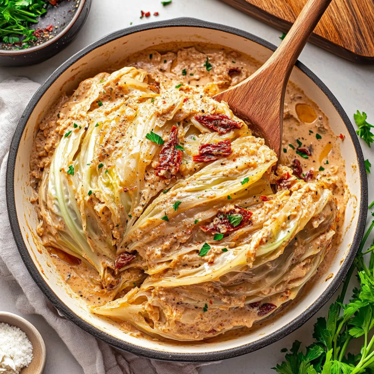 Once out of the oven, let your Marry Me Melting Cabbage rest for a few minutes to allow the flavors to meld. Finish with a sprinkle of fresh parsley for color and added freshness. Serve this indulgent dish warm, and delight in the creamy comfort that makes it so special!