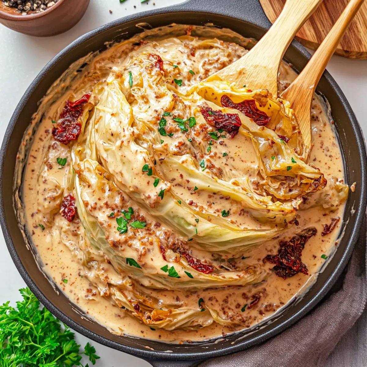 Decadent, this Marry Me Melting Cabbage elevates a humble vegetable into a creamy, dreamy delight. Quick to prepare, the straightforward steps make it an ideal choice for busy evenings or impressing dinner guests. Flavor-packed, the Tuscan-inspired sauce bursts with richness, complemented by sun-dried tomatoes and aromatic herbs. Versatile enough to stand alone or pair beautifully with grilled chicken or crusty bread, this dish promises to be a new favorite. As a crowd-pleasing vegetarian option, it’s perfect for anyone longing to indulge without the guilt of fast food. Try serving it alongside my delicious Marry Chicken Pasta for an unforgettable meal!