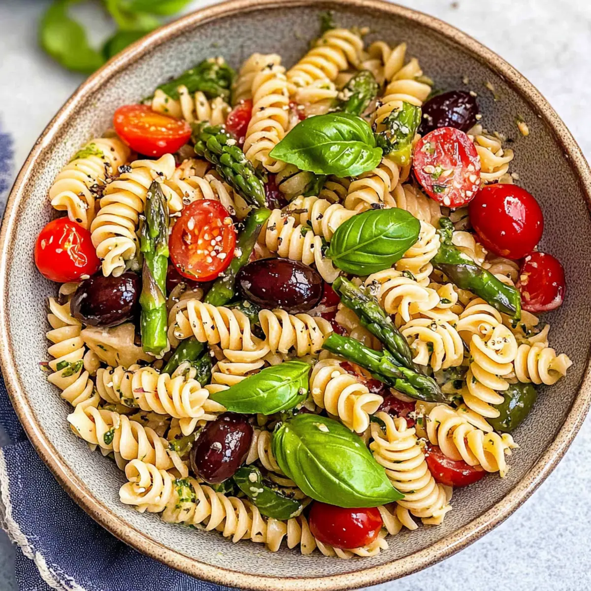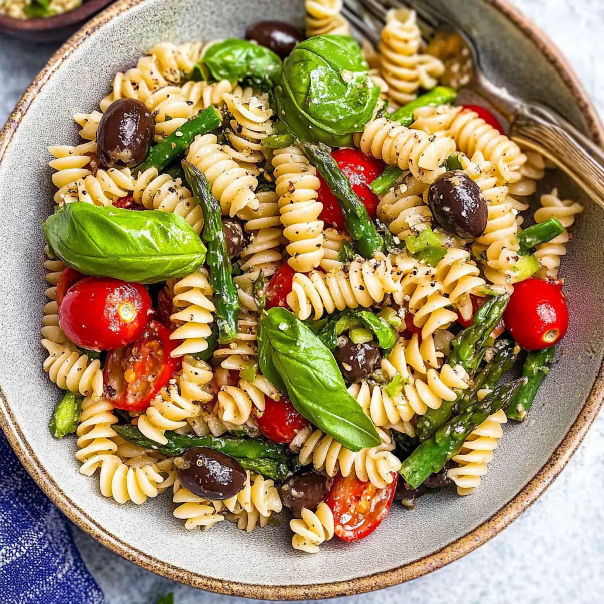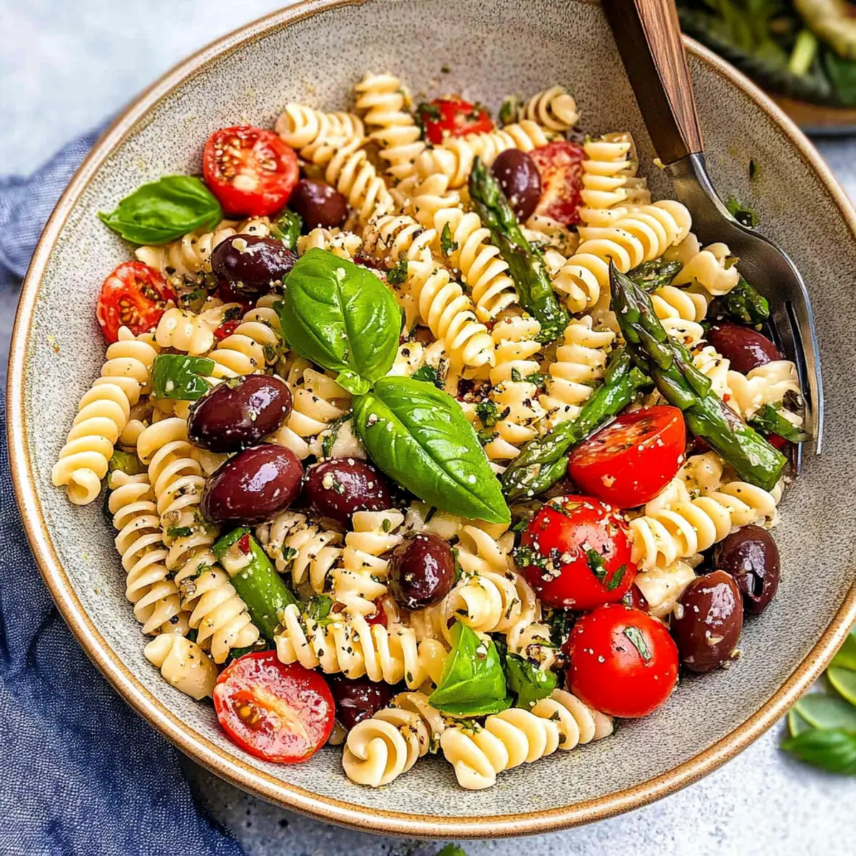 Mediterranean Pasta Salad is an ideal choice for meal prep aficionados! You can cook the fusilli pasta and sauté the asparagus up to 24 hours in advance, then store them in an airtight container in the refrigerator. Additionally, wash and chop the vegetables—such as cherry tomatoes, cucumber, and radishes—prepping them a day ahead will save you precious time later. Just remember to keep the dressing separate until you’re ready to serve; this maintains the salad’s freshness and crunch. When it’s time to enjoy, simply combine all the components, toss with the dressing, and you’ll have a delicious, vibrant Mediterranean Pasta Salad waiting to delight your taste buds!
