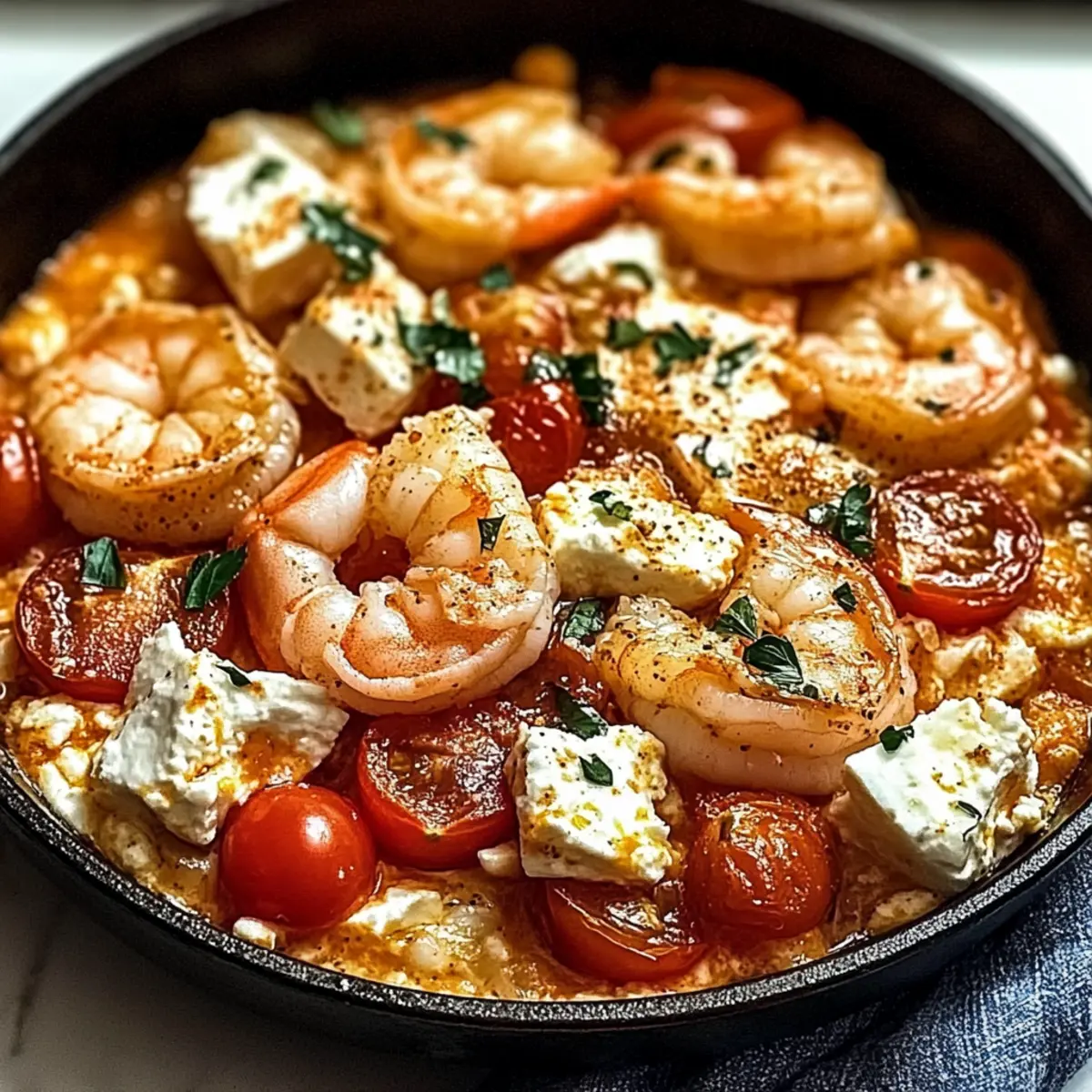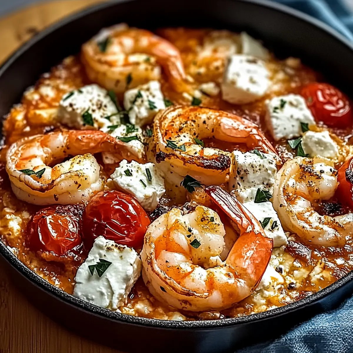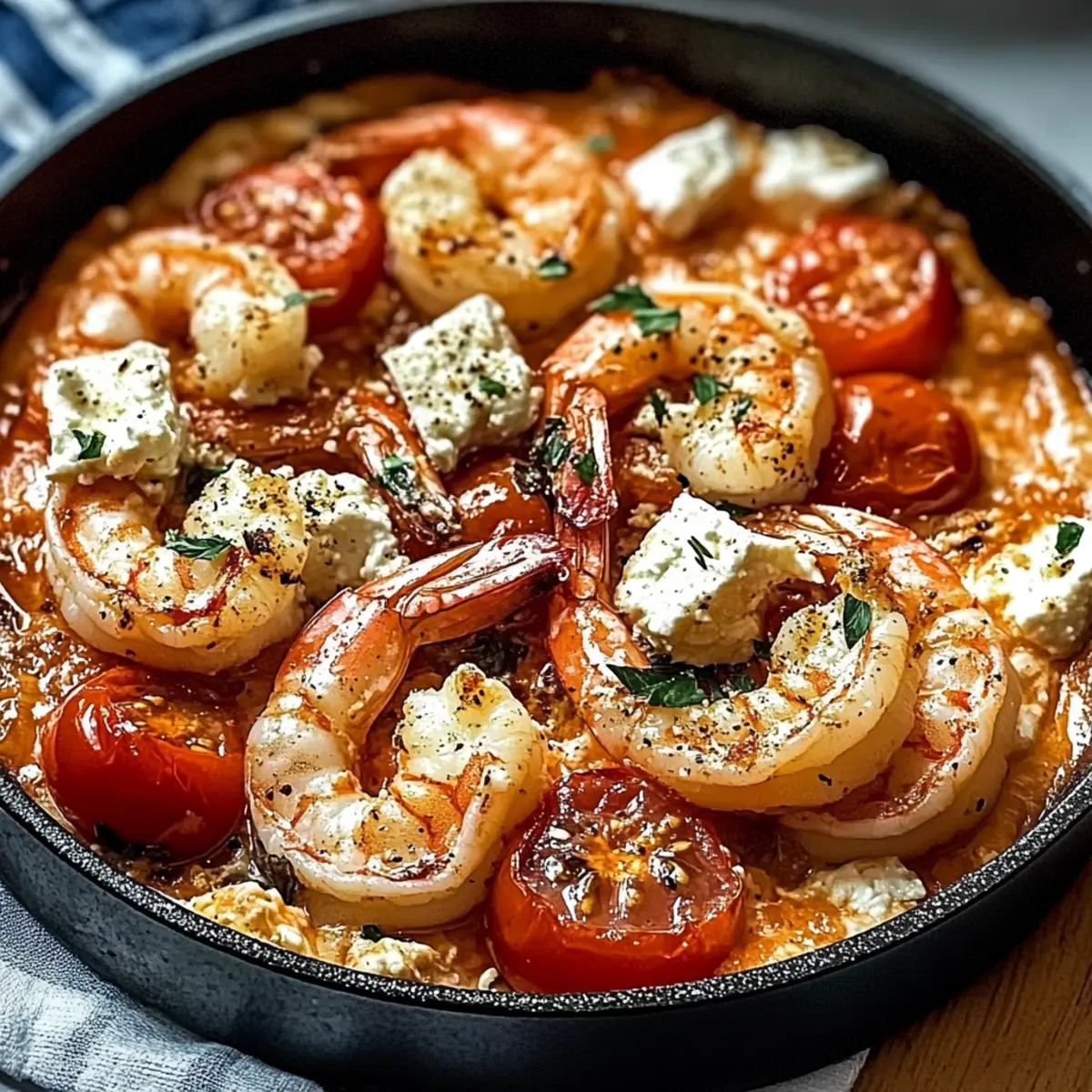 • Creamy Goat Cheese: Try replacing feta with tangy goat cheese for a creamier flavor profile. Goat cheese adds a delightful earthiness that pairs well with the shrimp and tomatoes.