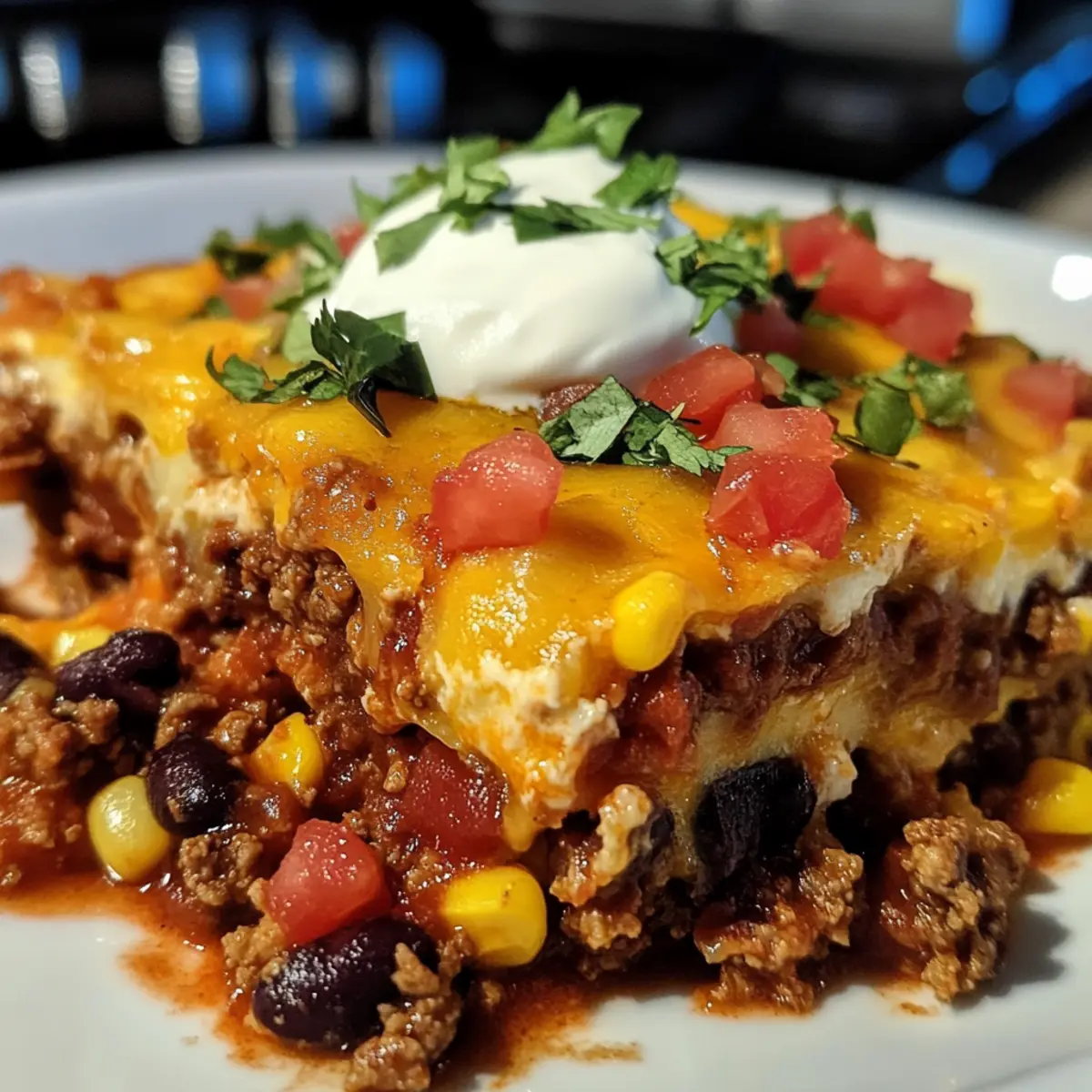 Once your Mexican Lasagna is beautifully golden and hot from the oven, remove it and let it cool for about 5 minutes. This resting time makes it easier to slice and serve without losing layers. Cut into squares, and consider garnishing with fresh cilantro or your favorite toppings before serving for an extra pop of flavor!
