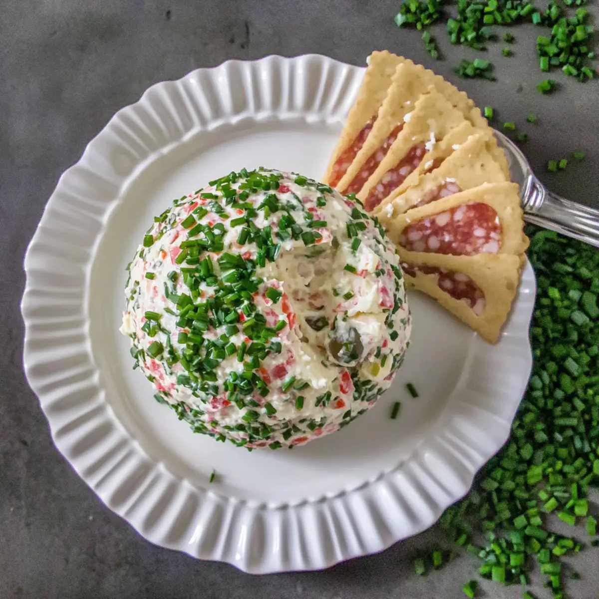 5. Remove from plastic wrap and roll in chopped chives until fully covered.