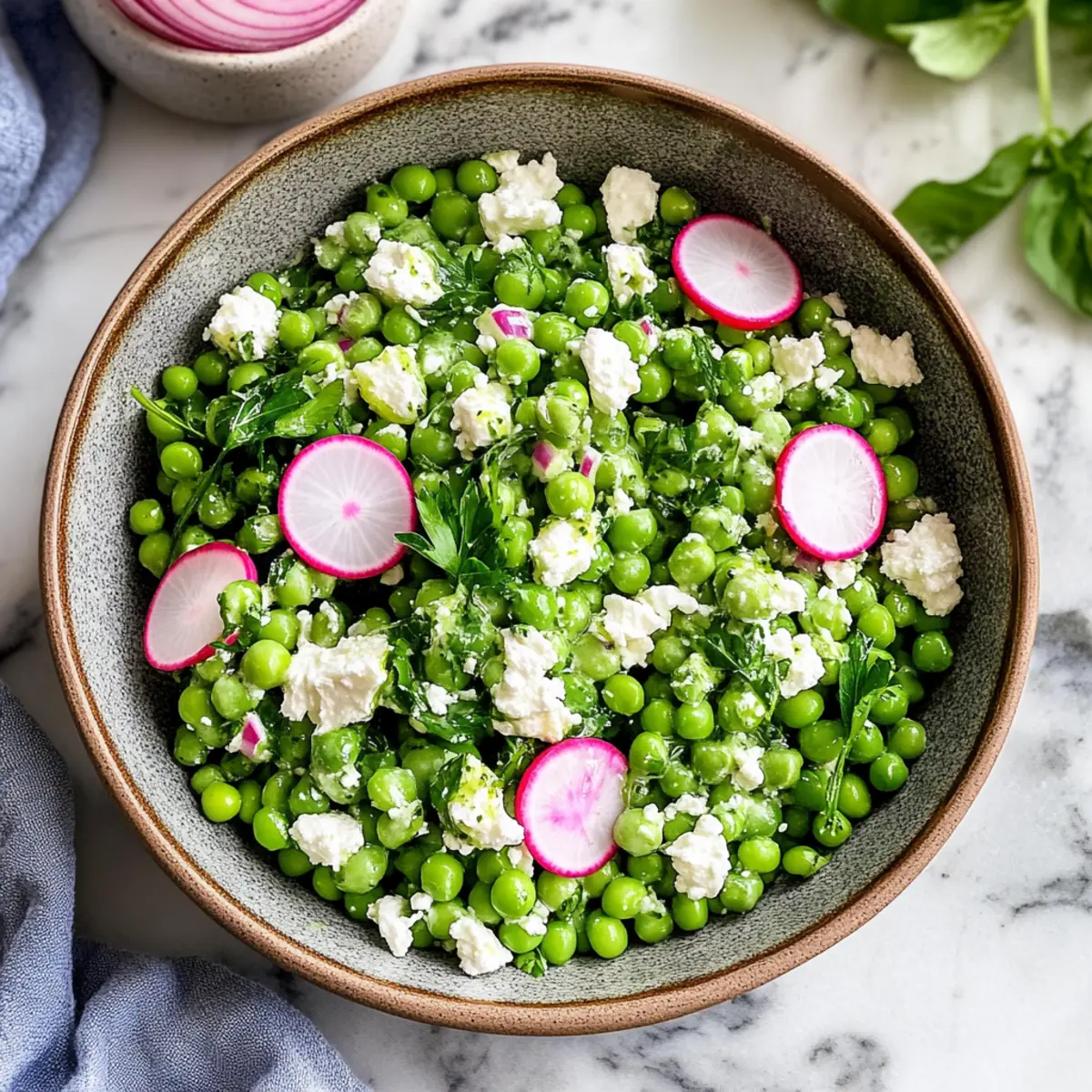 This Pea Salad is a refreshing blend of blanched peas, feta, and herbed yogurt, perfect for a light lunch.