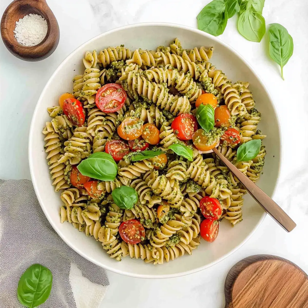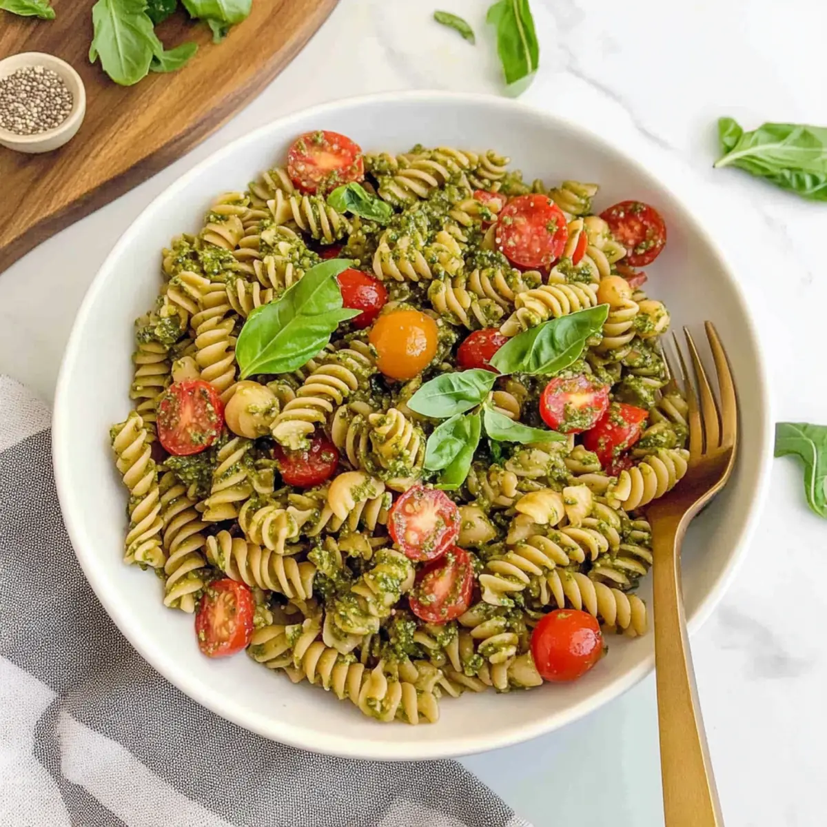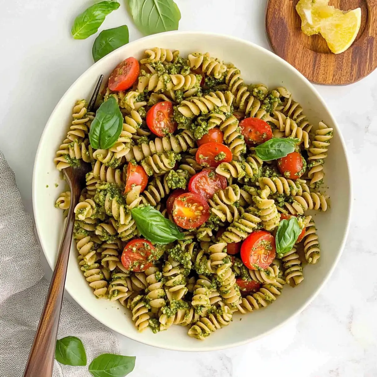 Absolutely! When choosing ingredients, opt for vibrant, fresh basil with no wilting or dark spots. For cherry tomatoes, look for firm ones that have a rich red color. If using bell peppers, choose ones that are heavy for their size with smooth skin. These visual cues really enhance the flavors of your creamy pesto red lentil pasta salad!