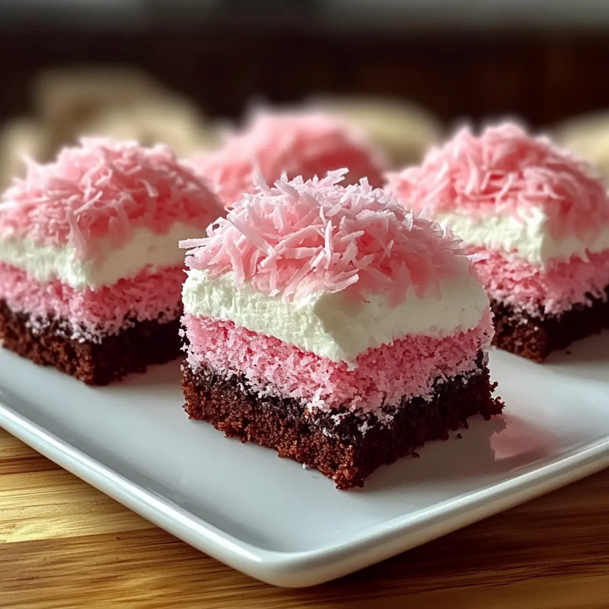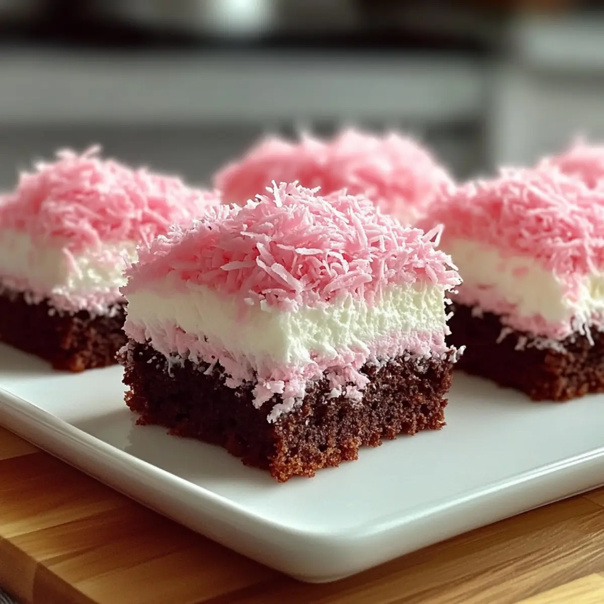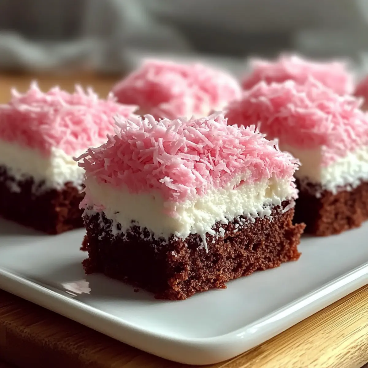 These Pink Coconut Snowball Cake Bars offer a delightful blend of chocolate and vanilla, perfect for any celebration.