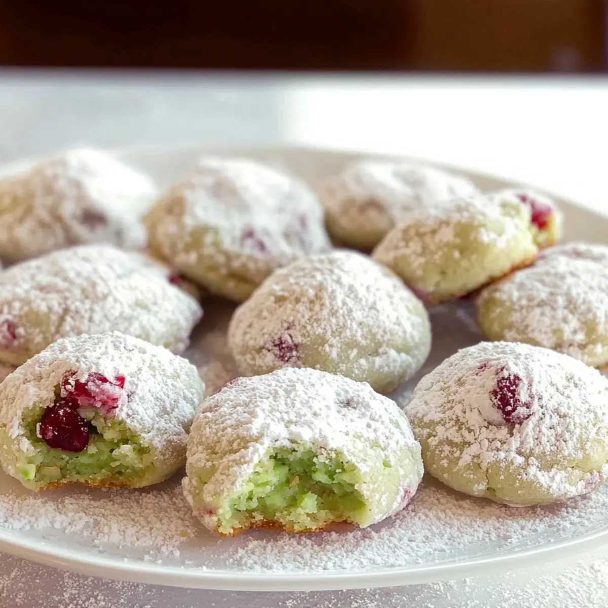 Allow the cookies to cool on the baking sheet for 5 minutes before transferring them to a wire rack. Once completely cool, roll each cookie in powdered sugar for a sweet finishing touch that enhances the meltaway experience. The soft, snowy coating will contrast beautifully with the vibrant colors of your Pistachio Cherry Meltaways.