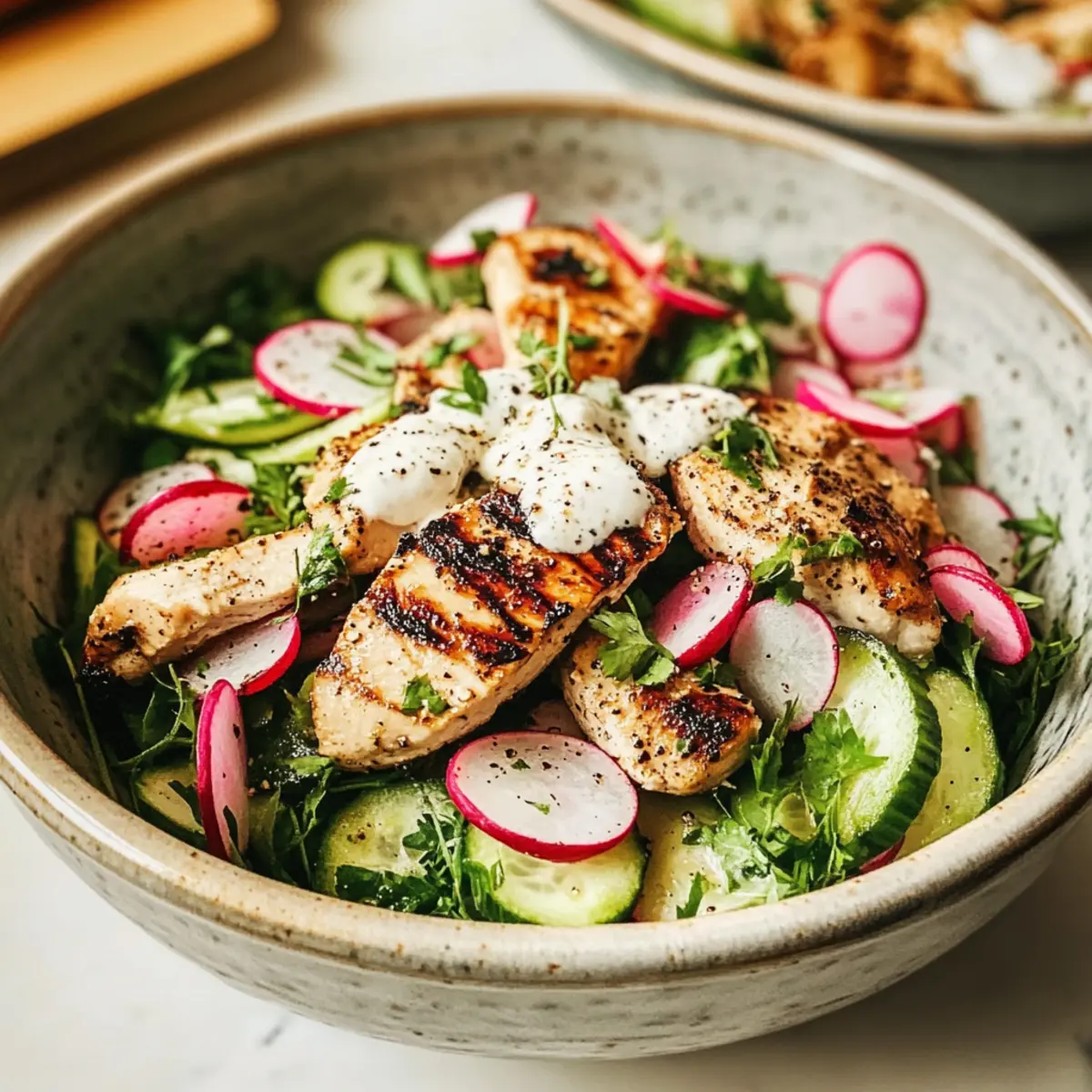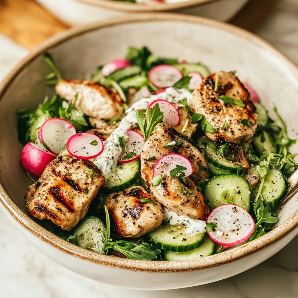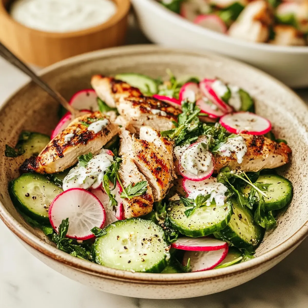 Zesty Radish Cucumber Salad with Grilled Chicken Delight