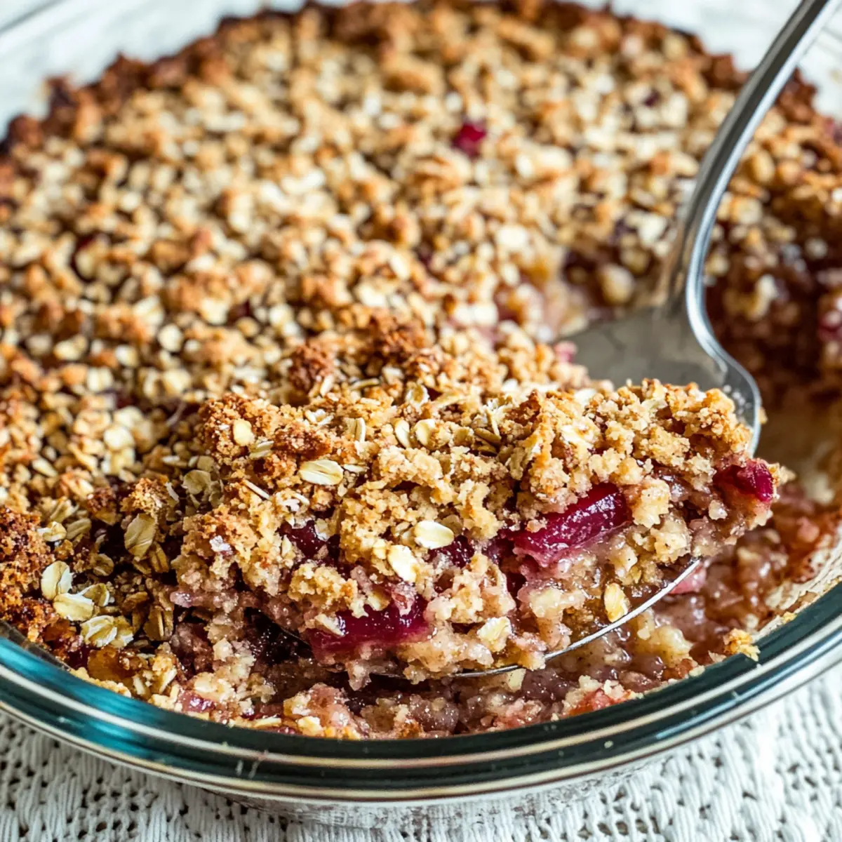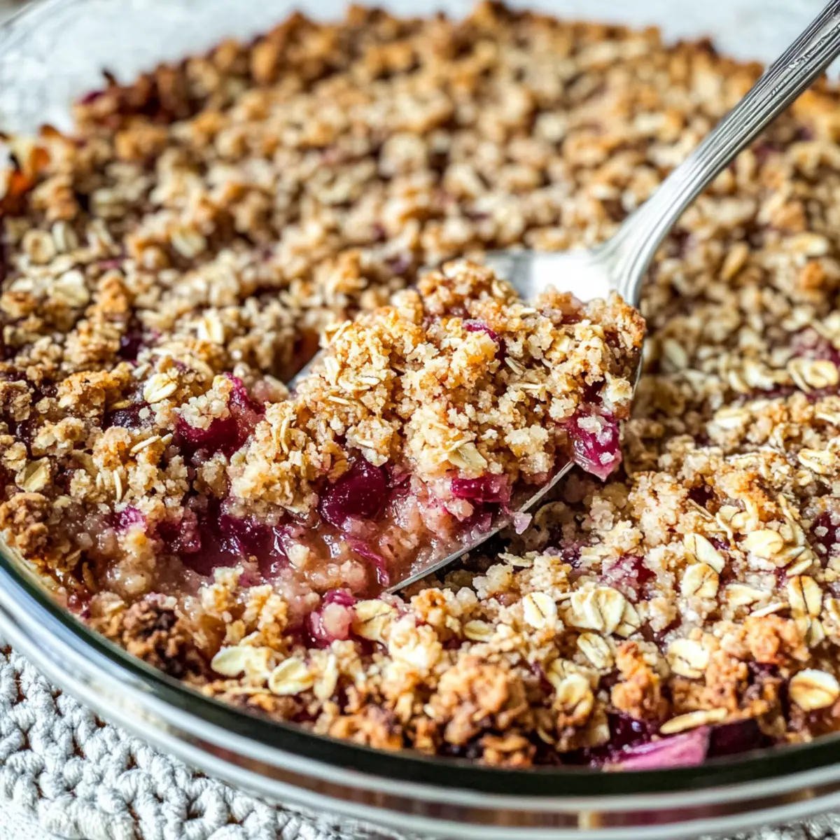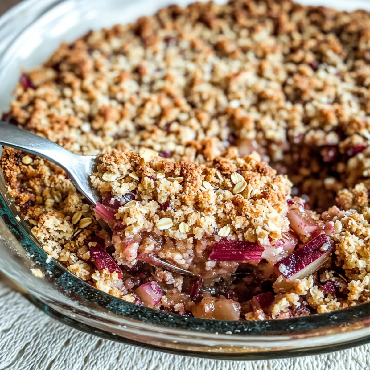 Flavor Explosion: The stunning tartness of rhubarb meshes wonderfully with the crunchy, sweet topping, creating a dessert that’s both vibrant and comforting.