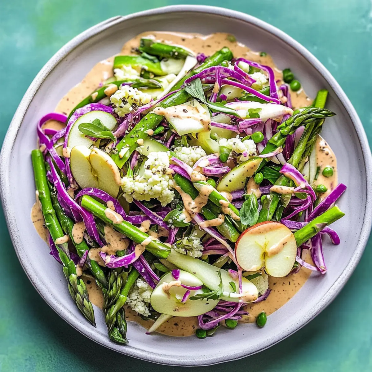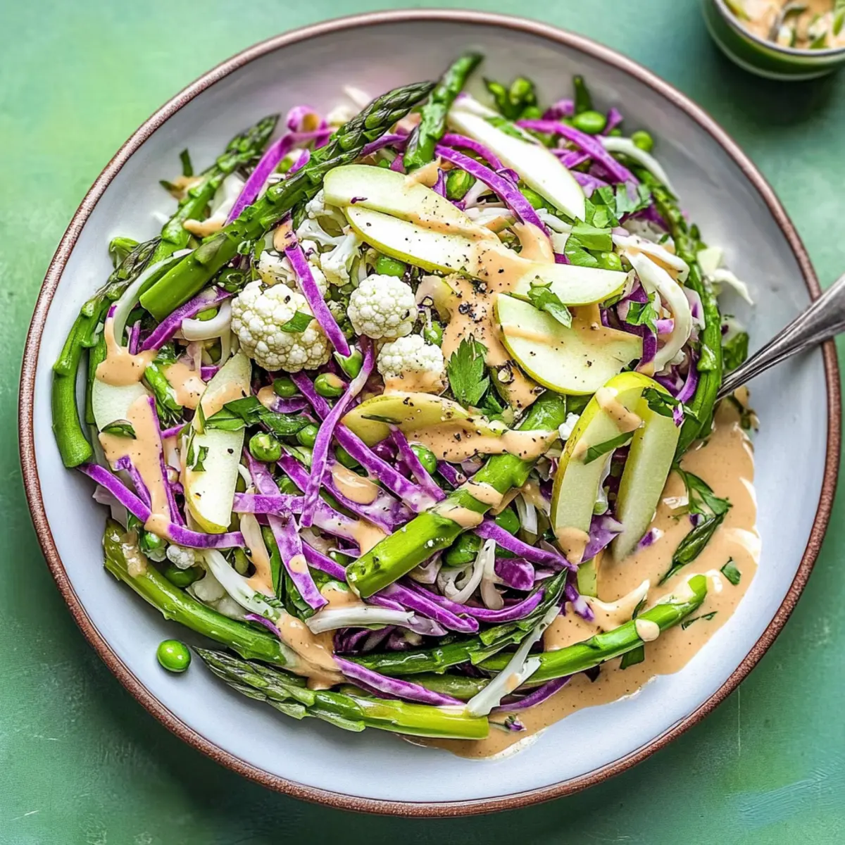 As I sliced into those crisp, vibrant spring vegetables, a wave of nostalgia washed over me—reminding me of sun-soaked picnics and the fresh, earthy air of a farmer’s market. This Shaved Spring Vegetable and Apple Salad with Ginger-Dijon Dressing is my love letter to the season, merging colorful layers of purple and white cauliflower, sweet apple, and crunchy snap peas into a delightful, nutrient-rich dish. Not only is it a feast for the eyes, but it also whips up in a flash, making it perfect for a quick lunch or a stunning side dish at gatherings. With a tangy homemade dressing that dances between spicy and sweet, this salad is sure to brighten your table and tantalize your taste buds. Are you ready to embrace the freshness of spring on your plate?