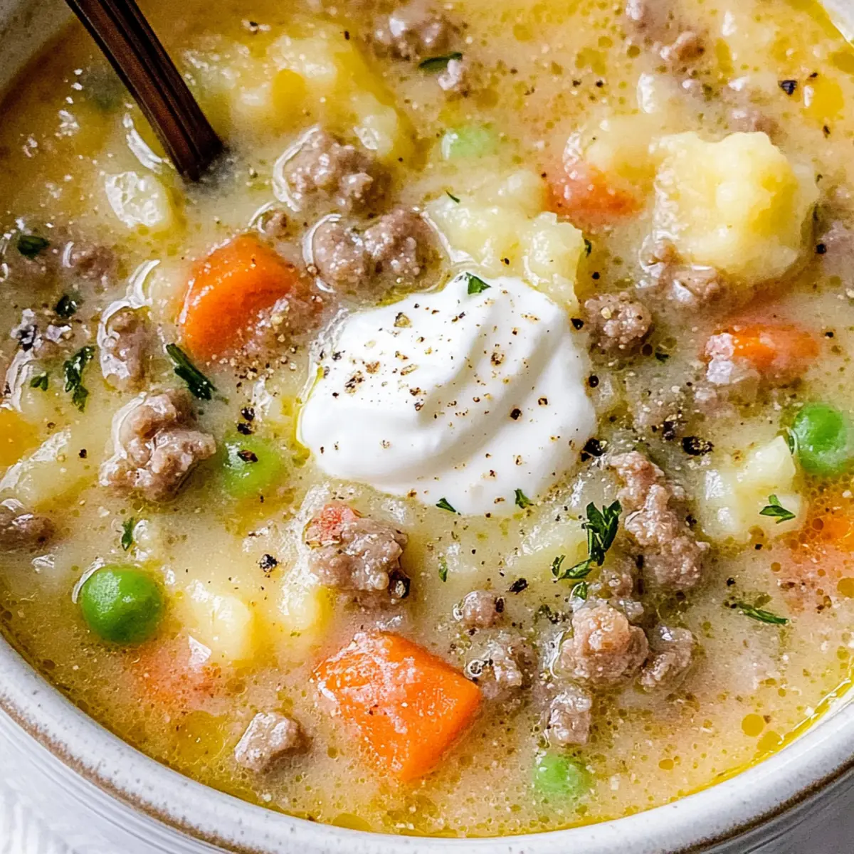 Remove the pot from the heat and gently stir in the Greek yogurt or sour cream. This adds a lovely creaminess to your Shepherd’s Pie Soup. Blend well until everything is evenly distributed, and the soup takes on a rich, velvety texture. Taste and adjust the seasoning if needed, making it truly yours.